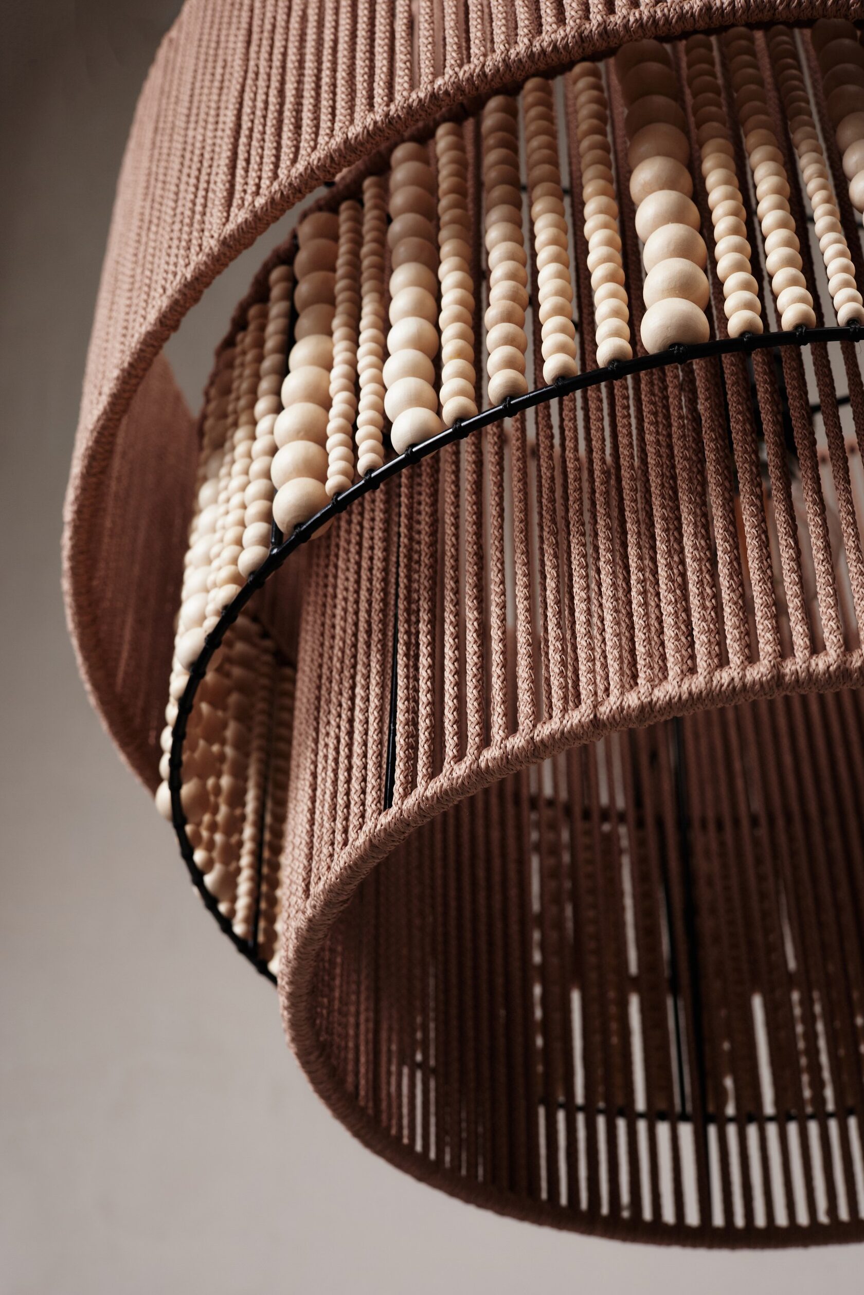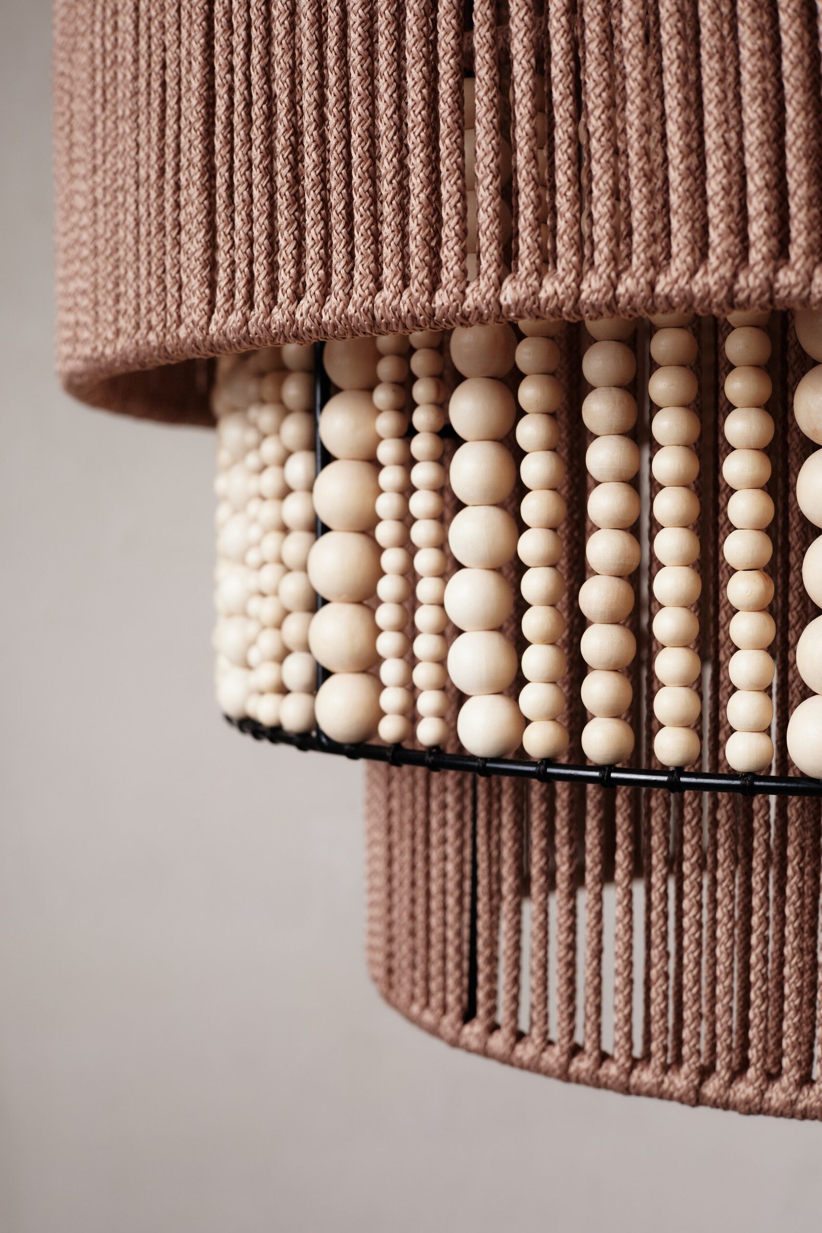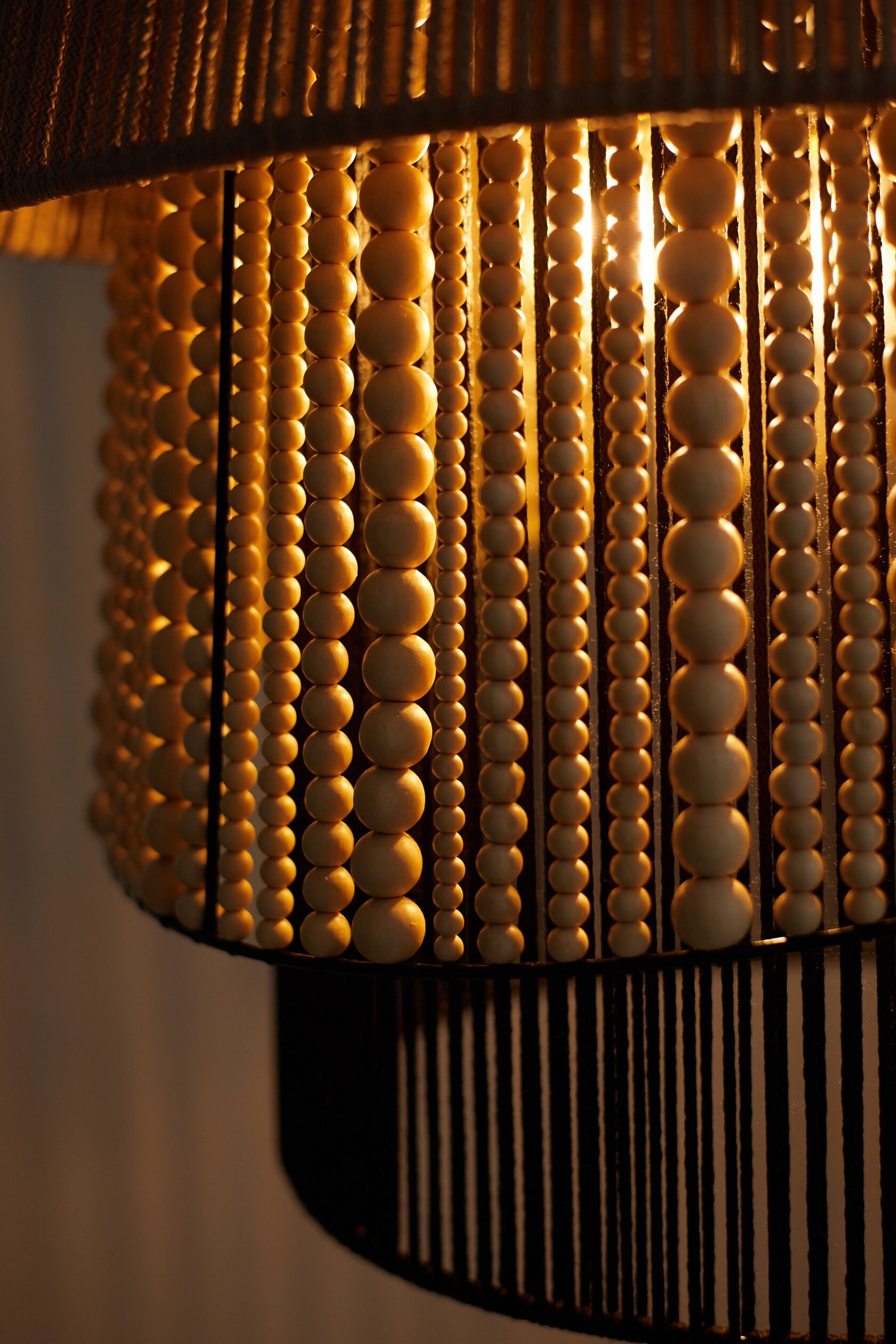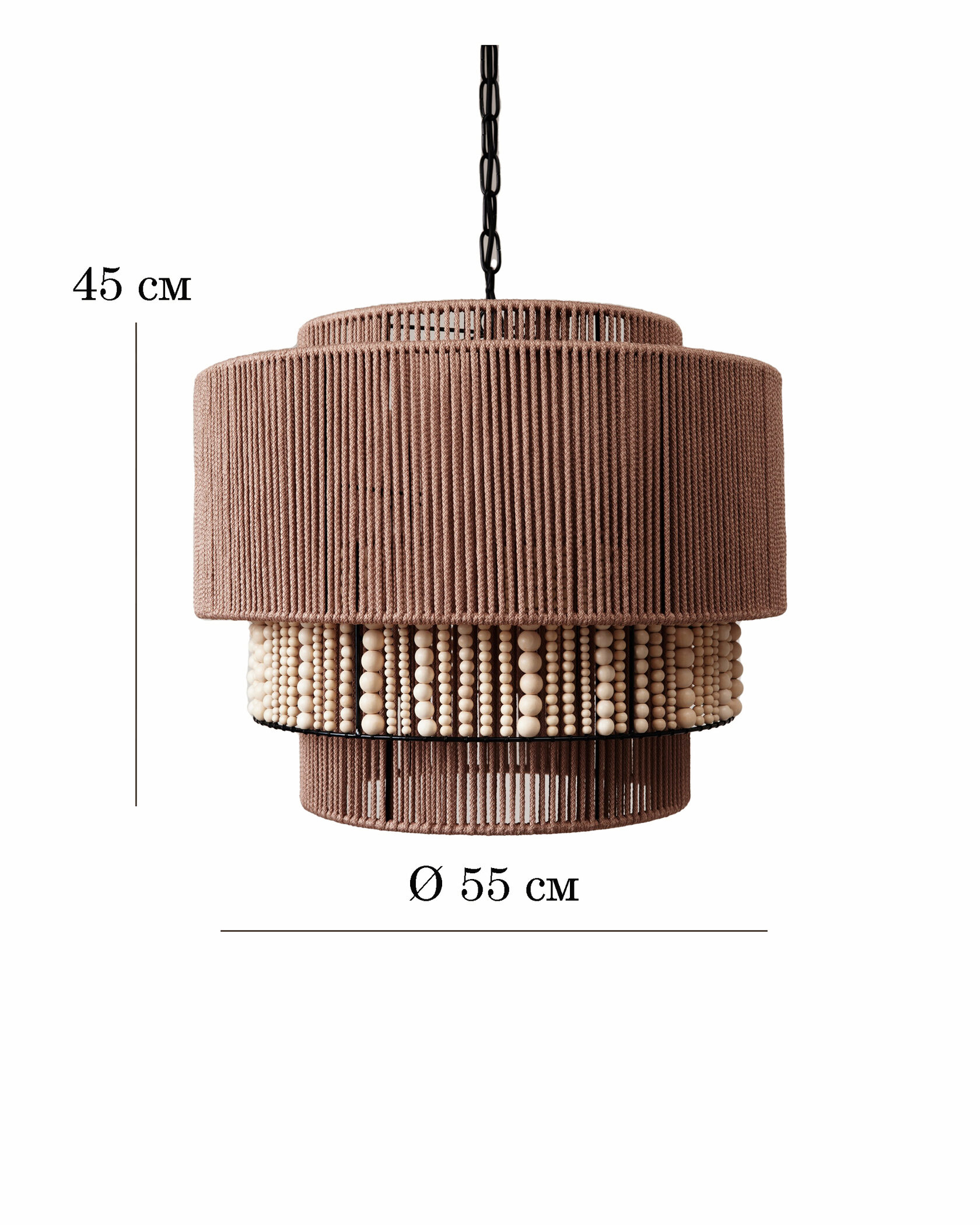 Светильник “Caramel” — это воплощение гармонии традиционного мастерства и современного дизайна. Более 1300 деревянных бусин, с такой любовью искусно собранных вручную, придают ему неповторимое очарование. Сочетание натурального светлого дерева и шнура в нежном пудрово-карамельном оттенке идеально для создания уюта и тепла в интерьере, а вечером ваша комната наполняется магией света и теней. Абажур может быть изготовлен в любых цветах по вашему запросу.