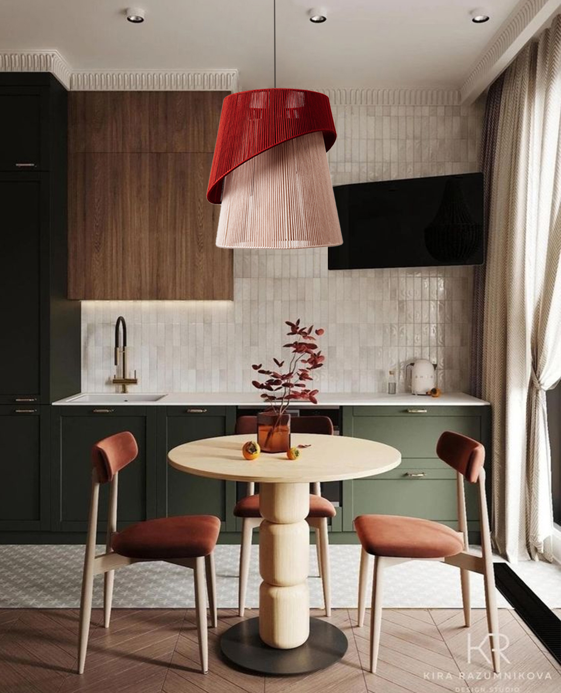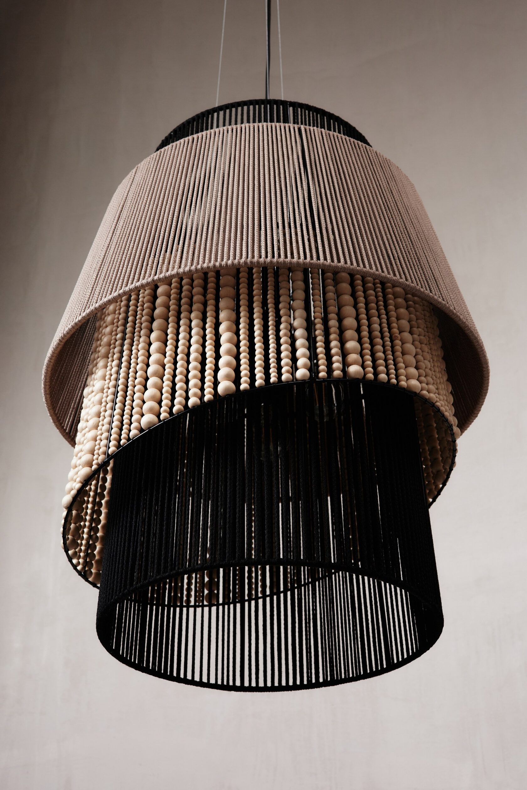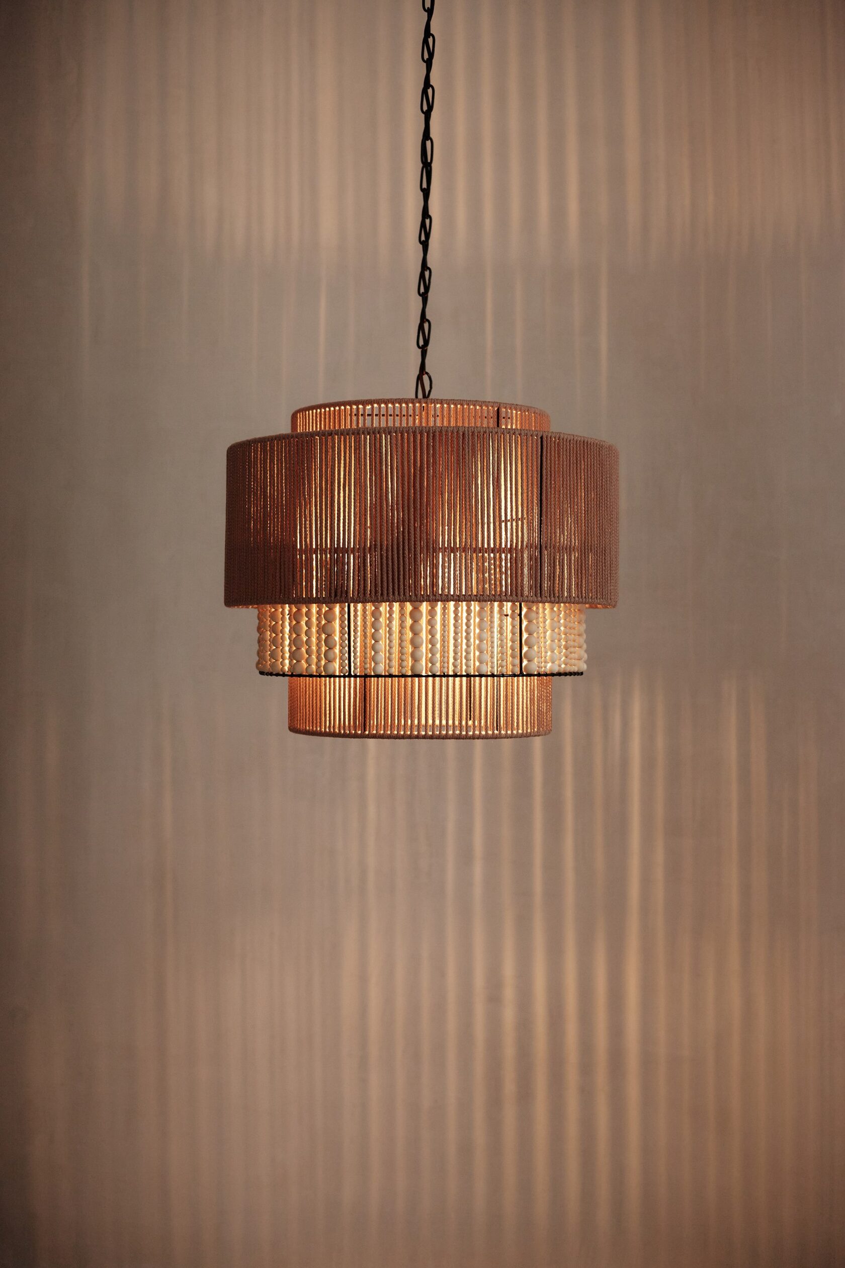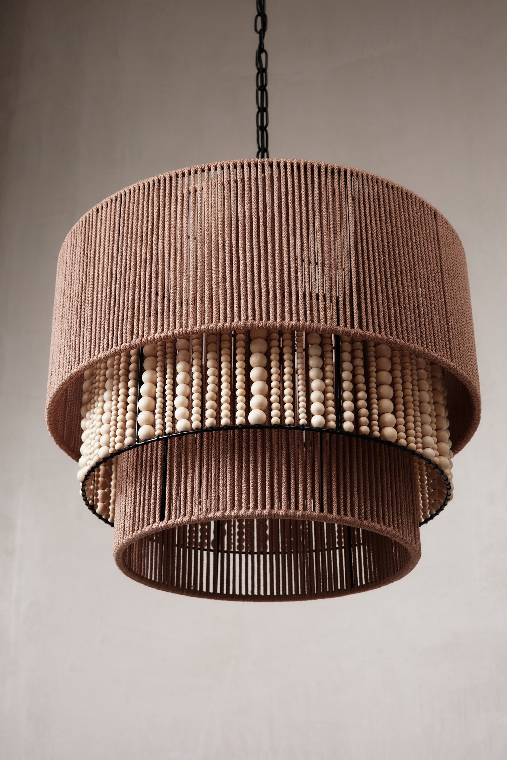 Светильник “Caramel” — это воплощение гармонии традиционного мастерства и современного дизайна. Более 1300 деревянных бусин, с такой любовью искусно собранных вручную, придают ему неповторимое очарование. Сочетание натурального светлого дерева и шнура в нежном пудрово-карамельном оттенке идеально для создания уюта и тепла в интерьере, а вечером ваша комната наполняется магией света и теней. Абажур может быть изготовлен в любых цветах по вашему запросу.