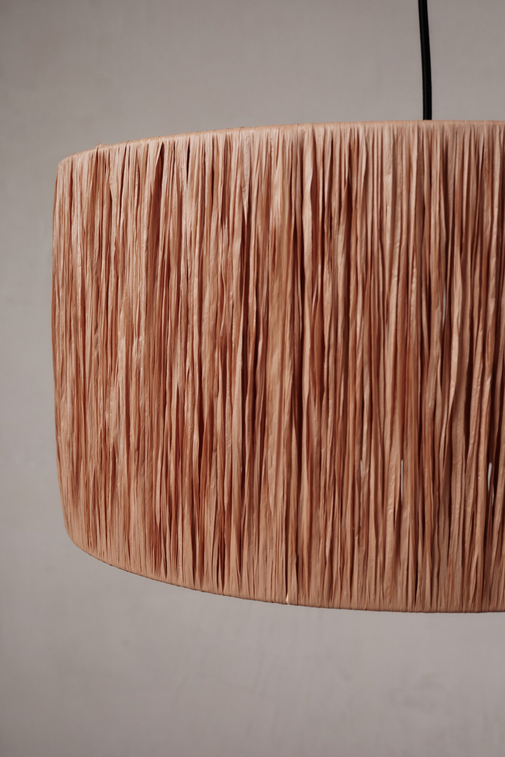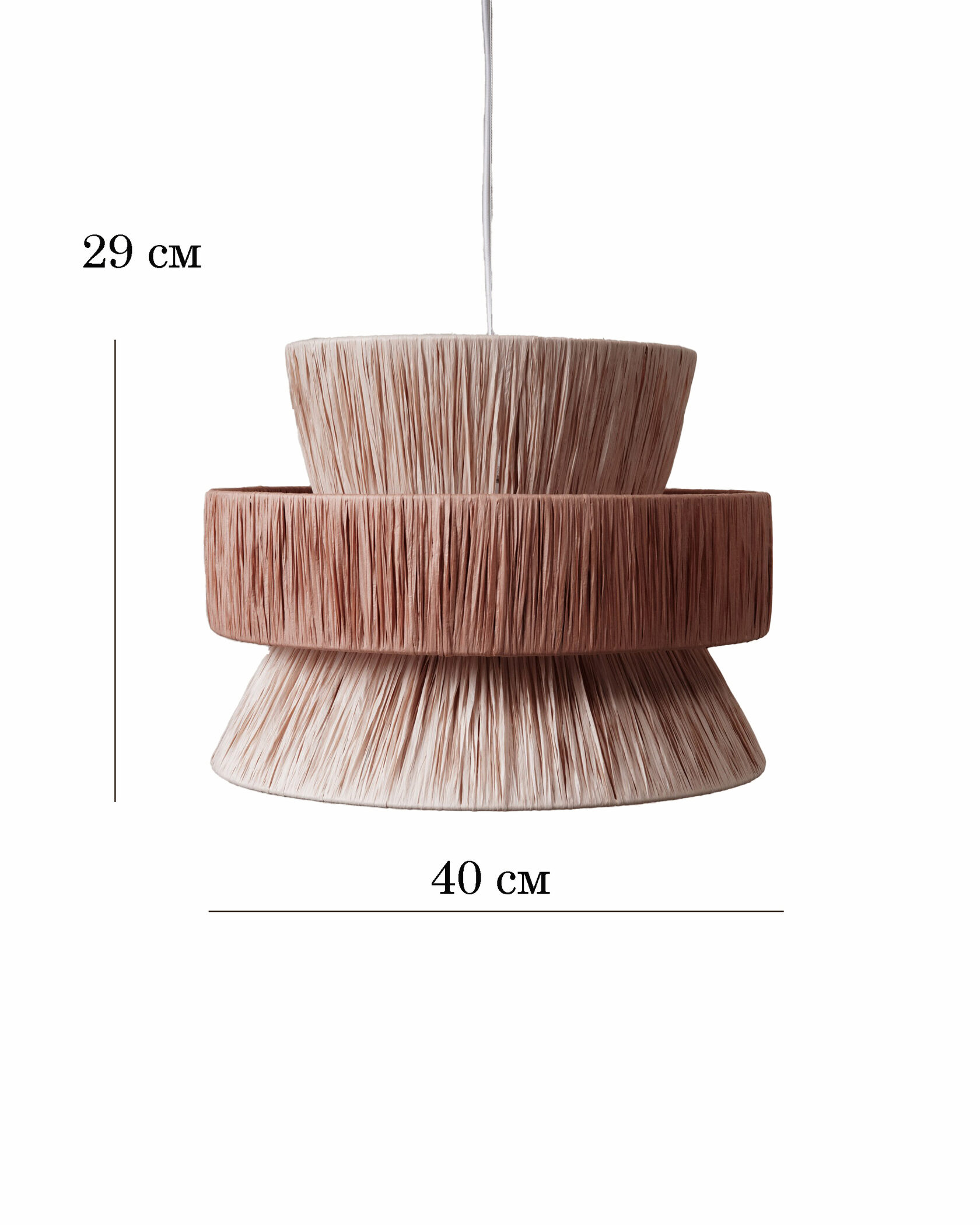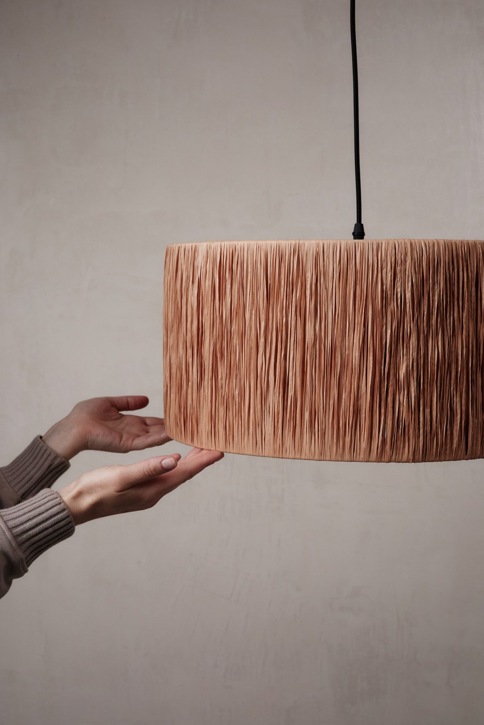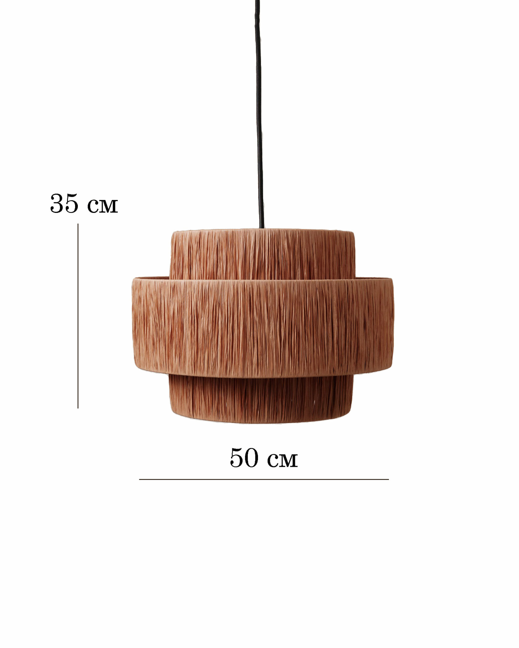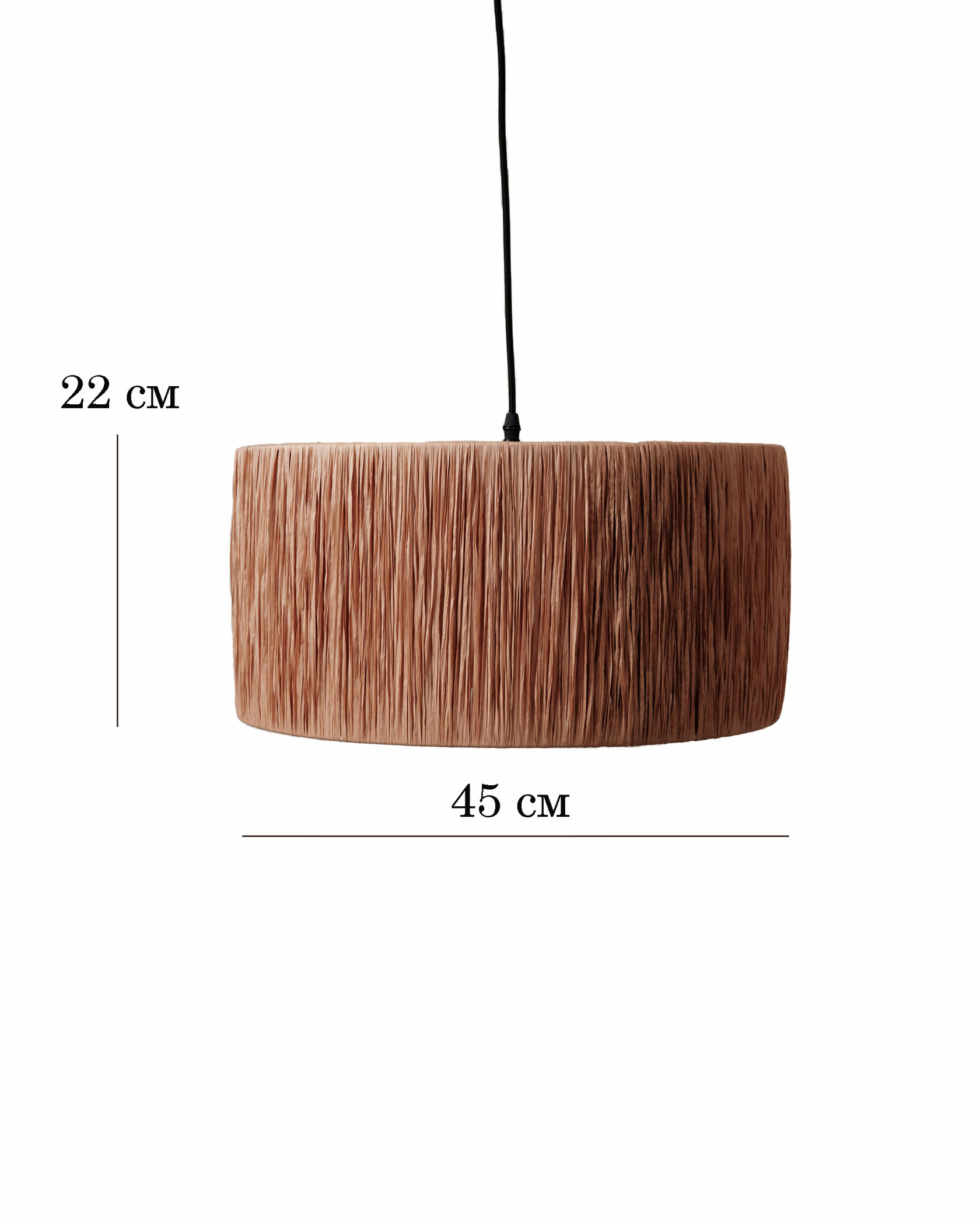 Светильник "Raffia 1" из нашей линейки светильников из натурального волокна пальмы рафии это воплощение уюта и тепла в вашем доме. Мягкие пшеничные оттенки с терракотовым подтоном, фактурность и тактильность абажура и невероятно уютное теплое свечение вечером. Мы предлагаем подвес (патрон и провод) в белом или черном цвете, что позволяет легко адаптировать светильник под ваш интерьер.