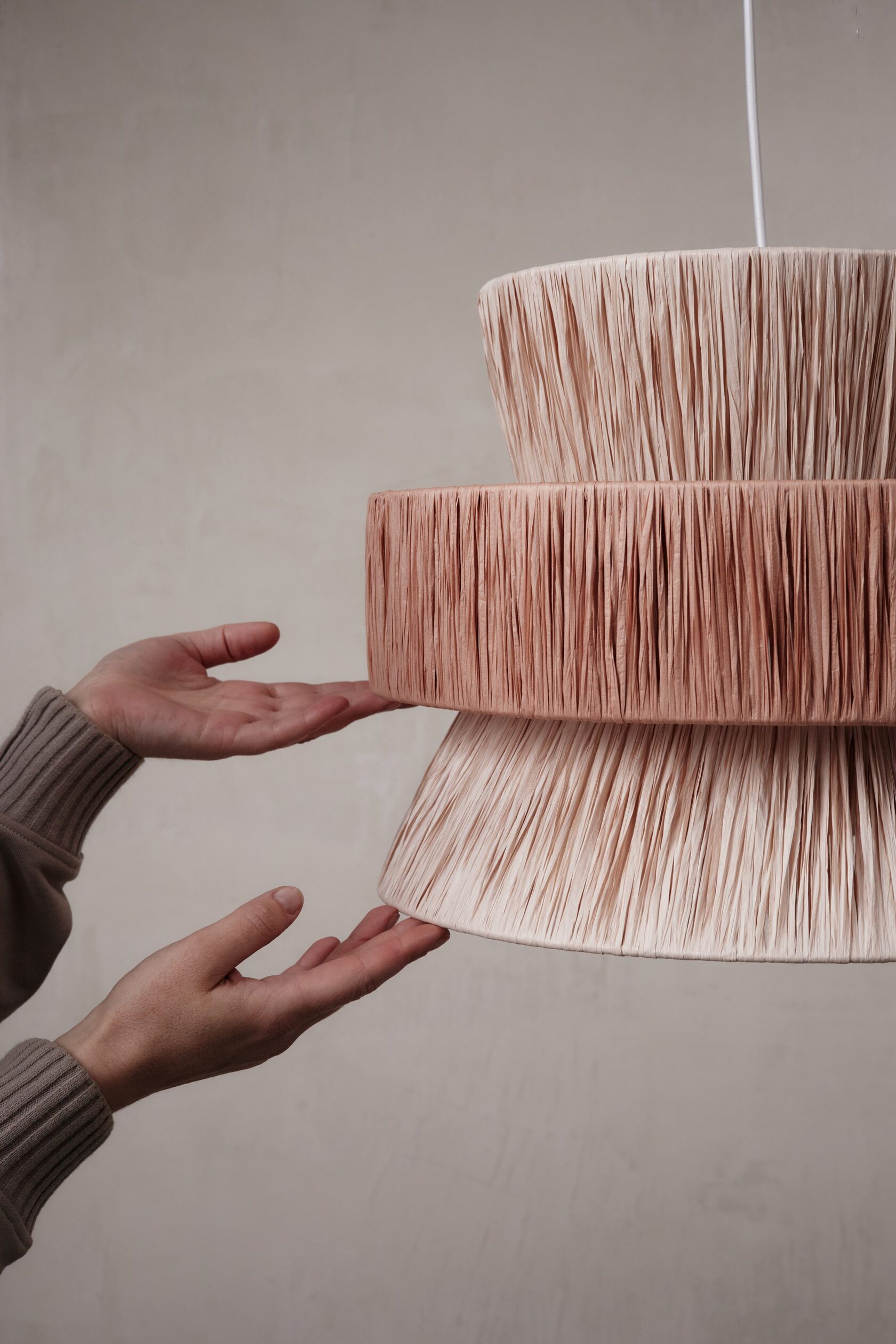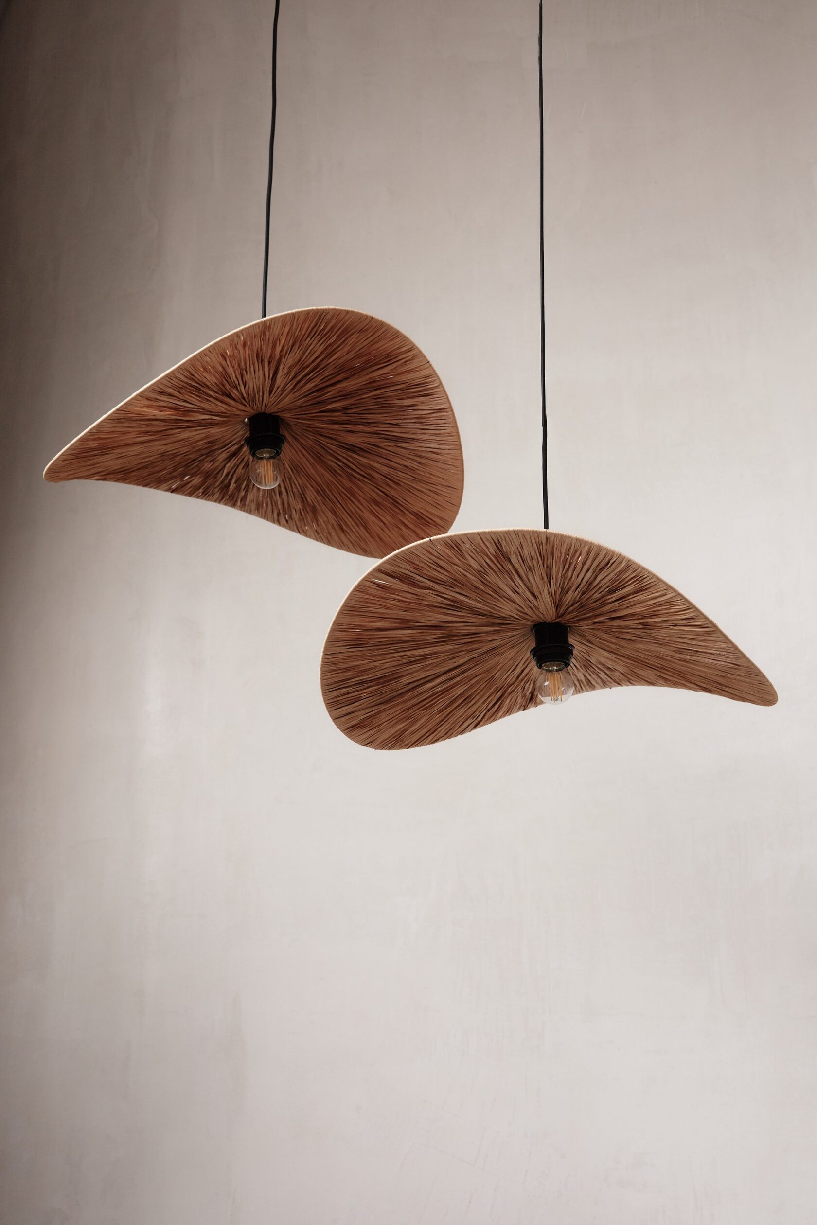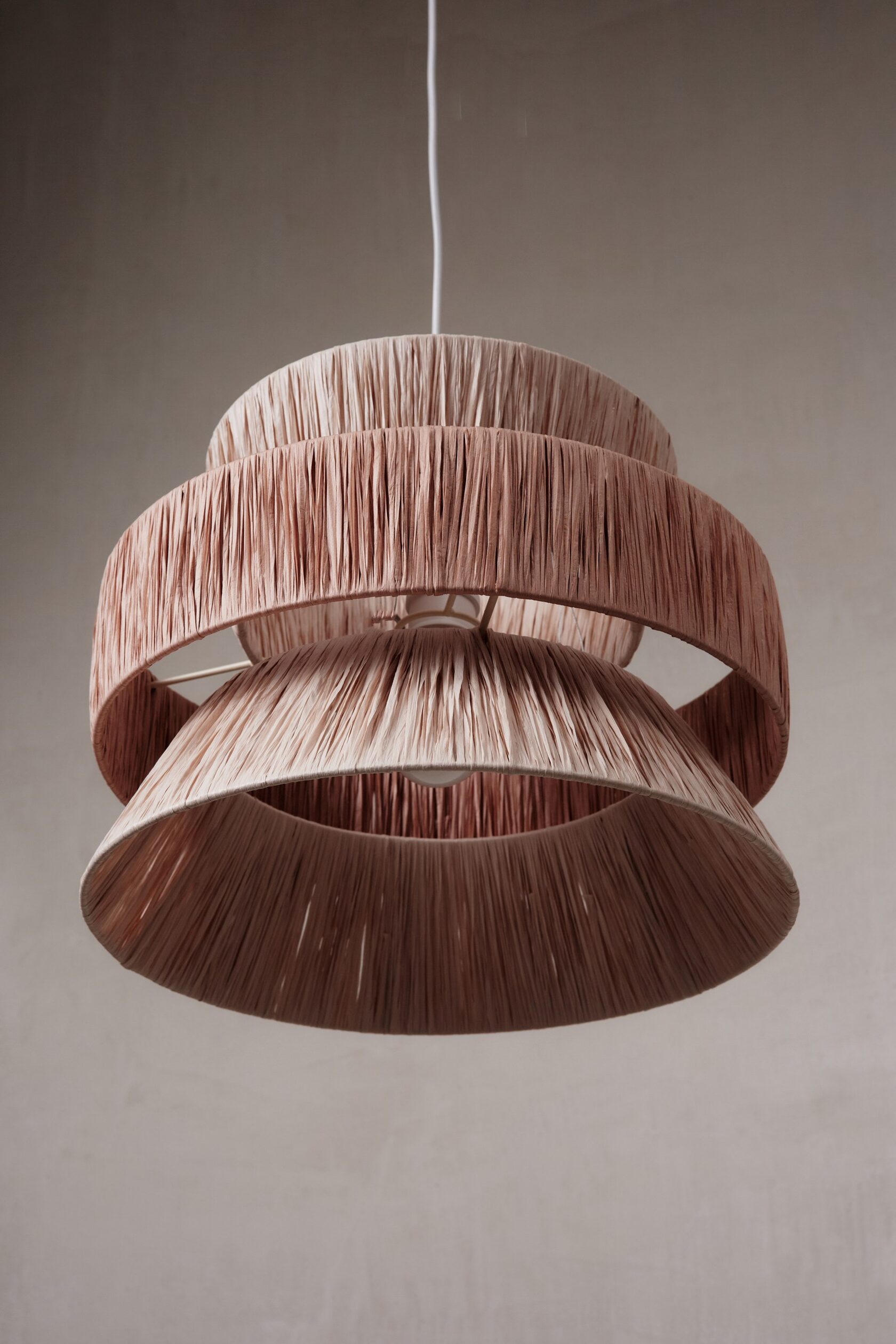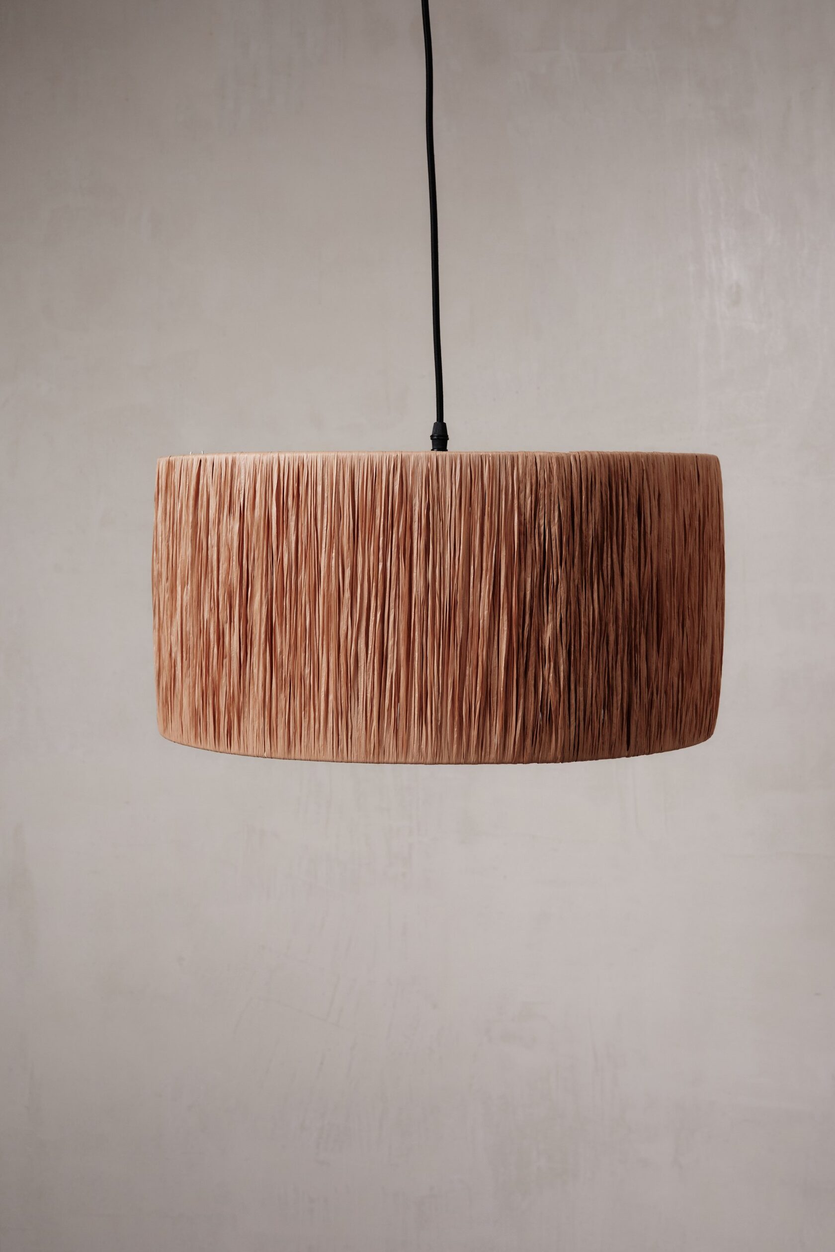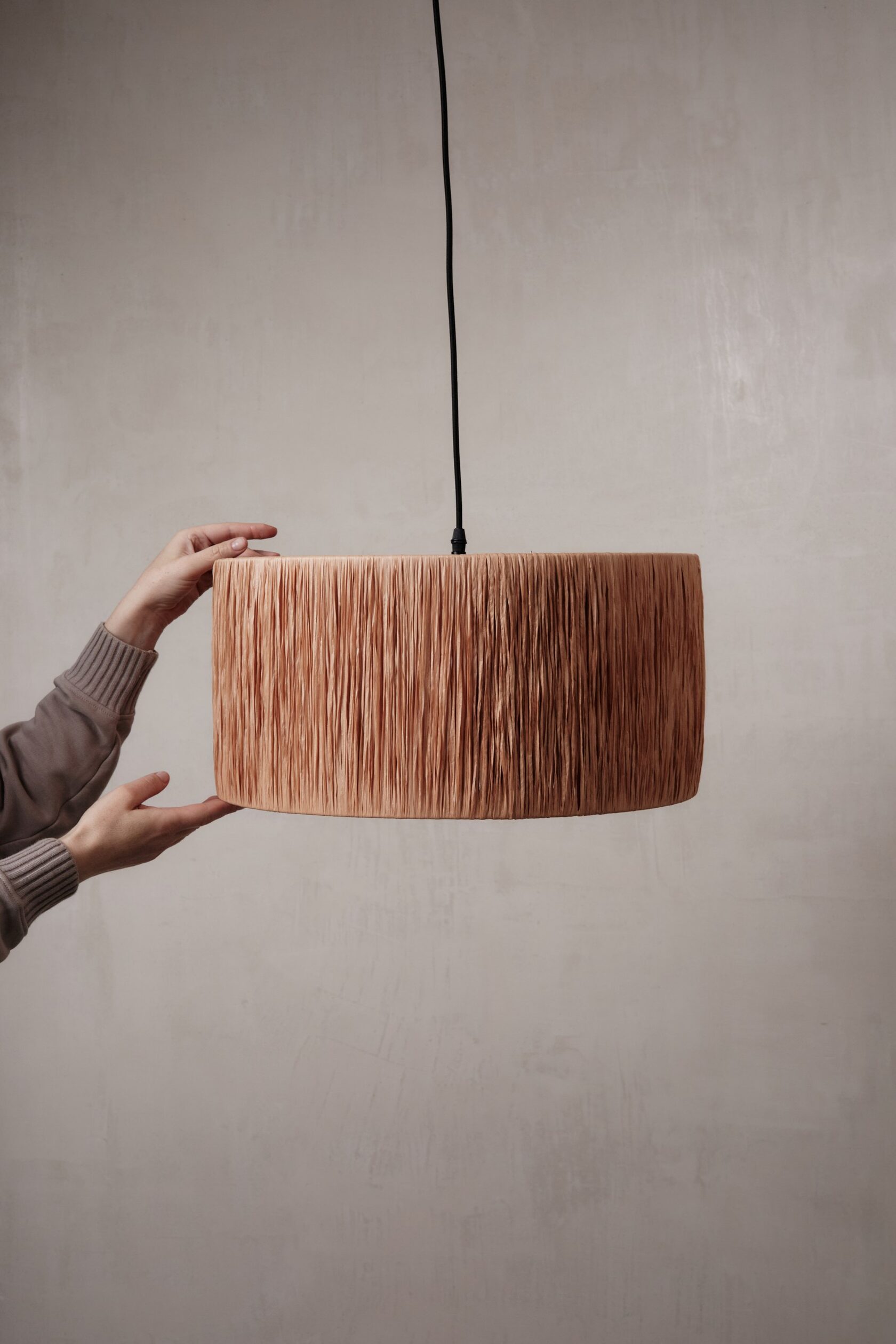 Светильник "Raffia 1" из нашей линейки светильников из натурального волокна пальмы рафии это воплощение уюта и тепла в вашем доме. Мягкие пшеничные оттенки с терракотовым подтоном, фактурность и тактильность абажура и невероятно уютное теплое свечение вечером. Мы предлагаем подвес (патрон и провод) в белом или черном цвете, что позволяет легко адаптировать светильник под ваш интерьер.
