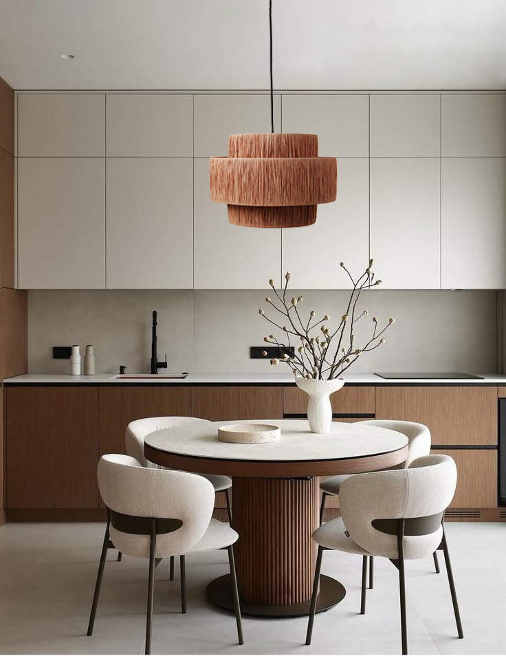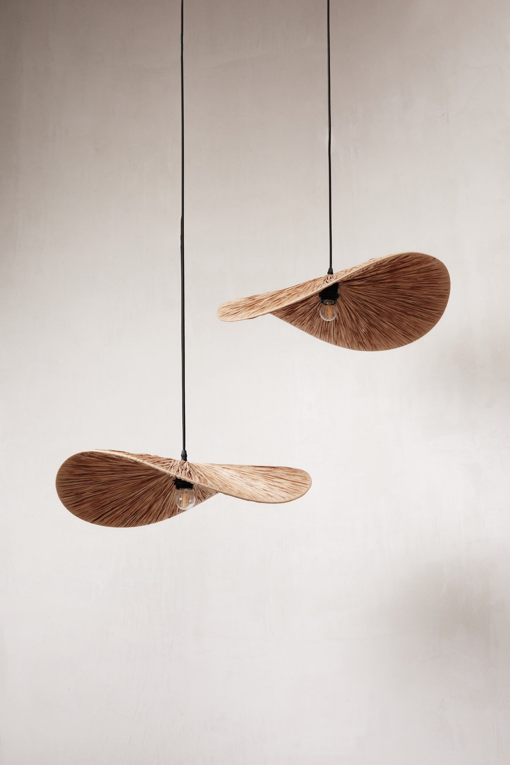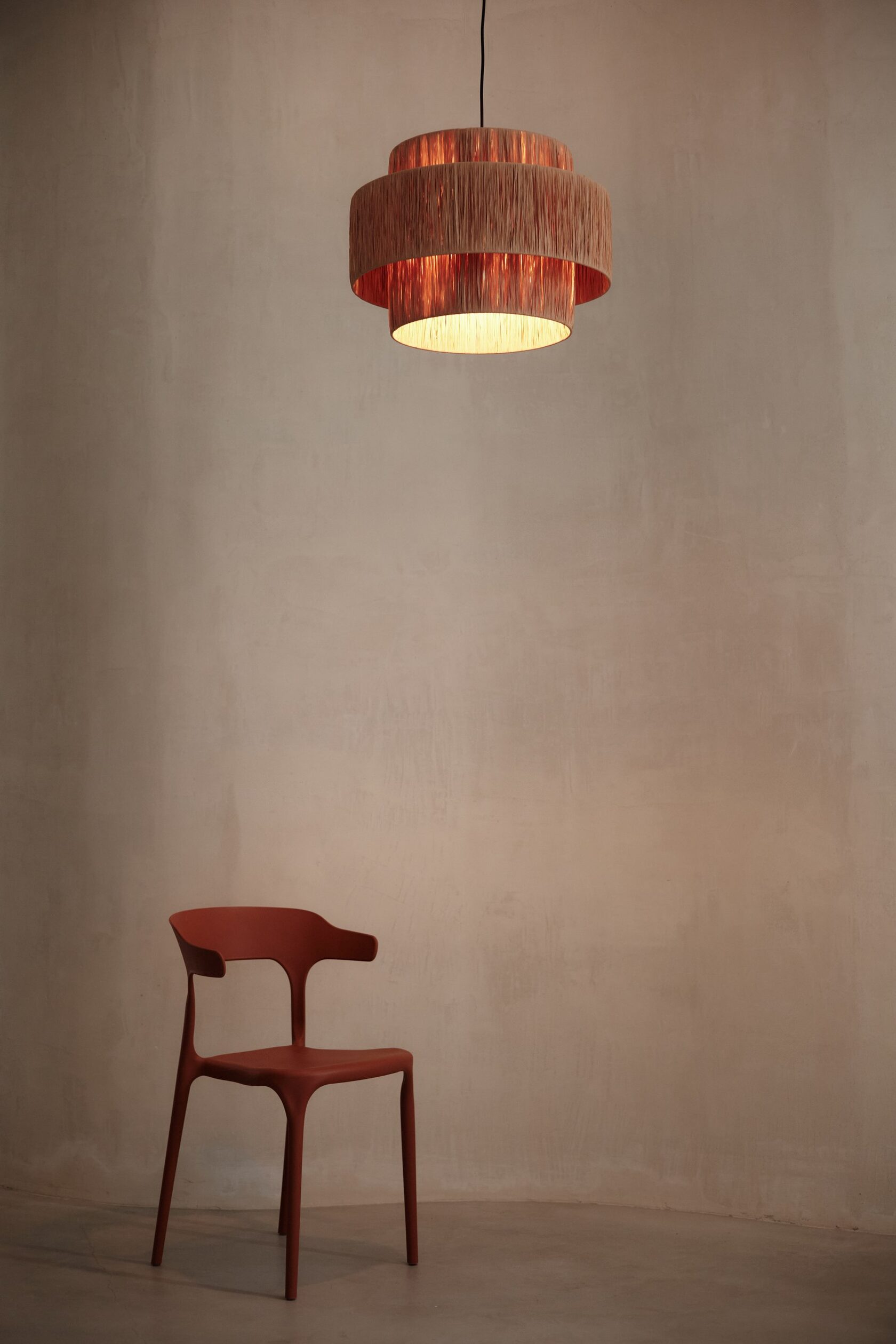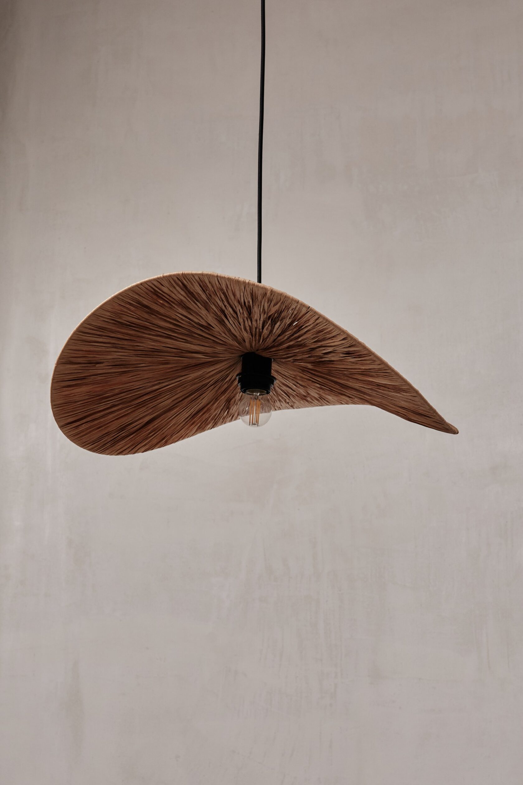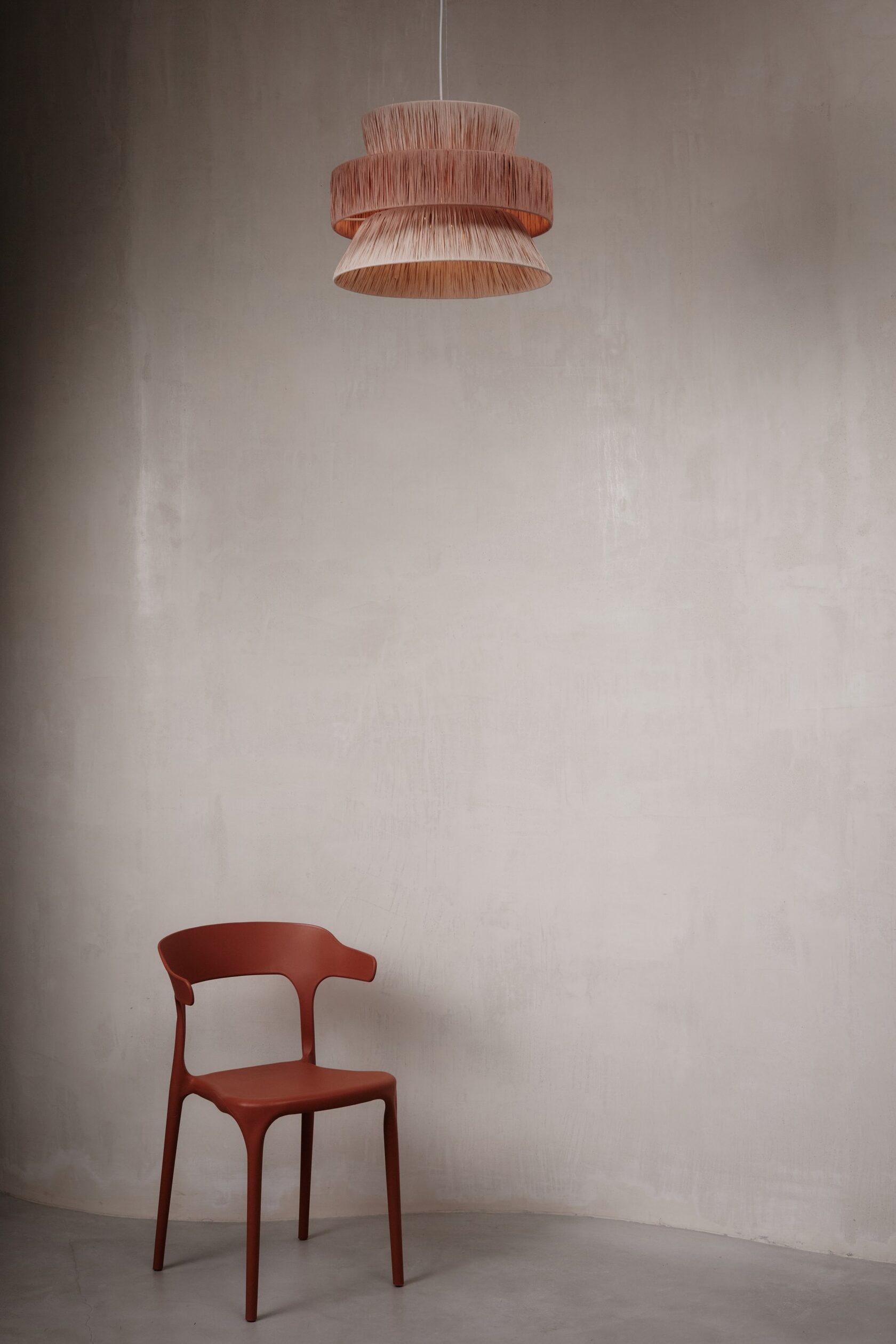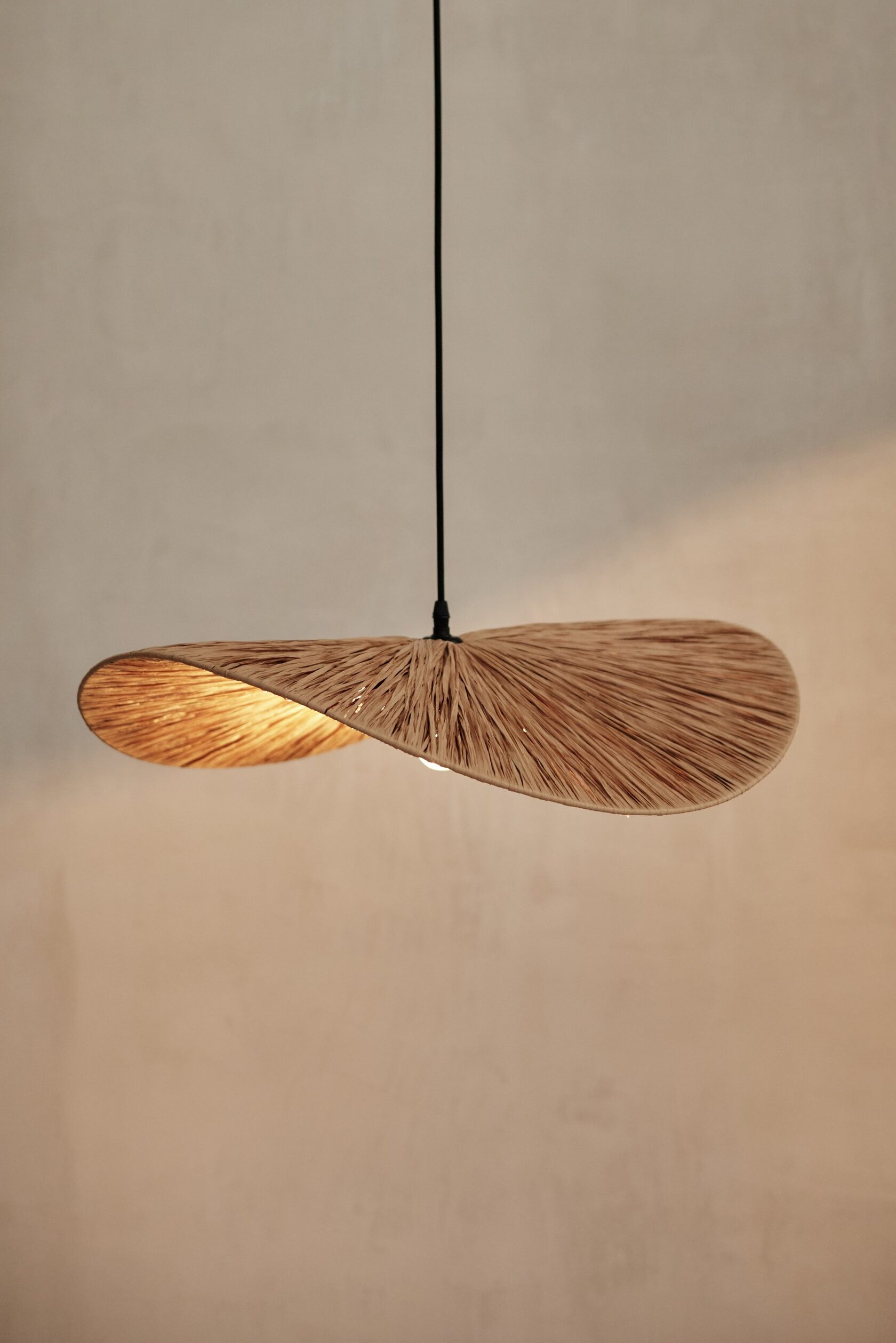 Светильник "Raffia 1" из нашей линейки светильников из натурального волокна пальмы рафии это воплощение уюта и тепла в вашем доме. Мягкие пшеничные оттенки с терракотовым подтоном, фактурность и тактильность абажура и невероятно уютное теплое свечение вечером. Мы предлагаем подвес (патрон и провод) в белом или черном цвете, что позволяет легко адаптировать светильник под ваш интерьер.