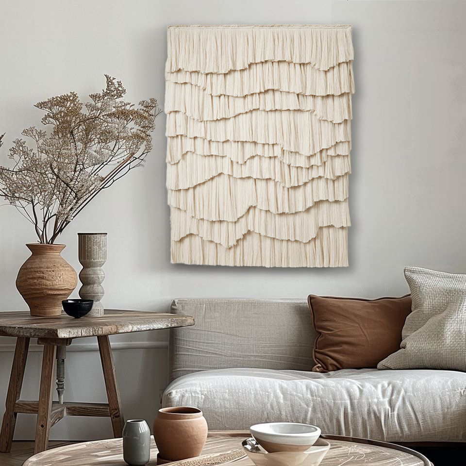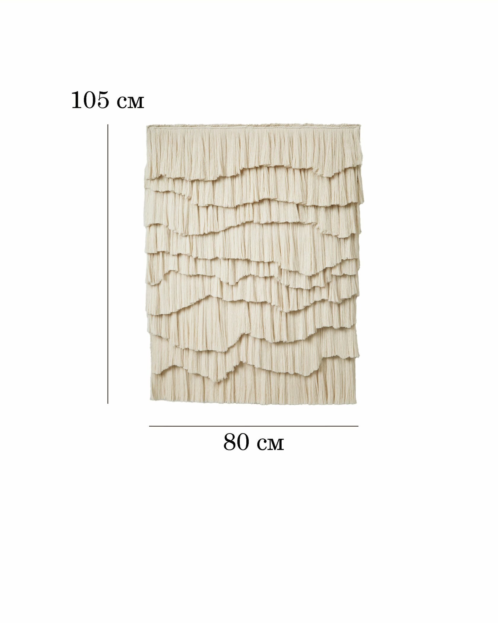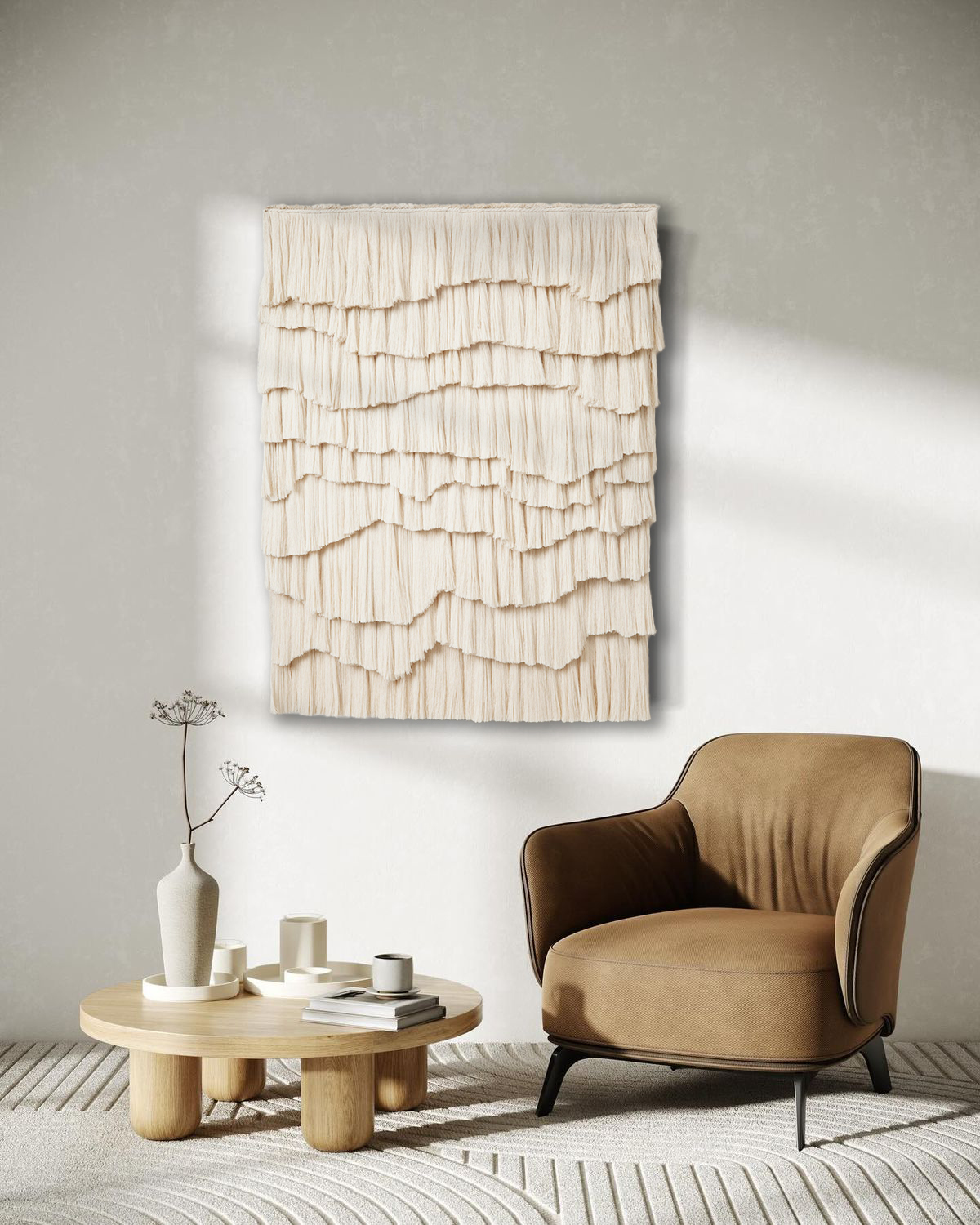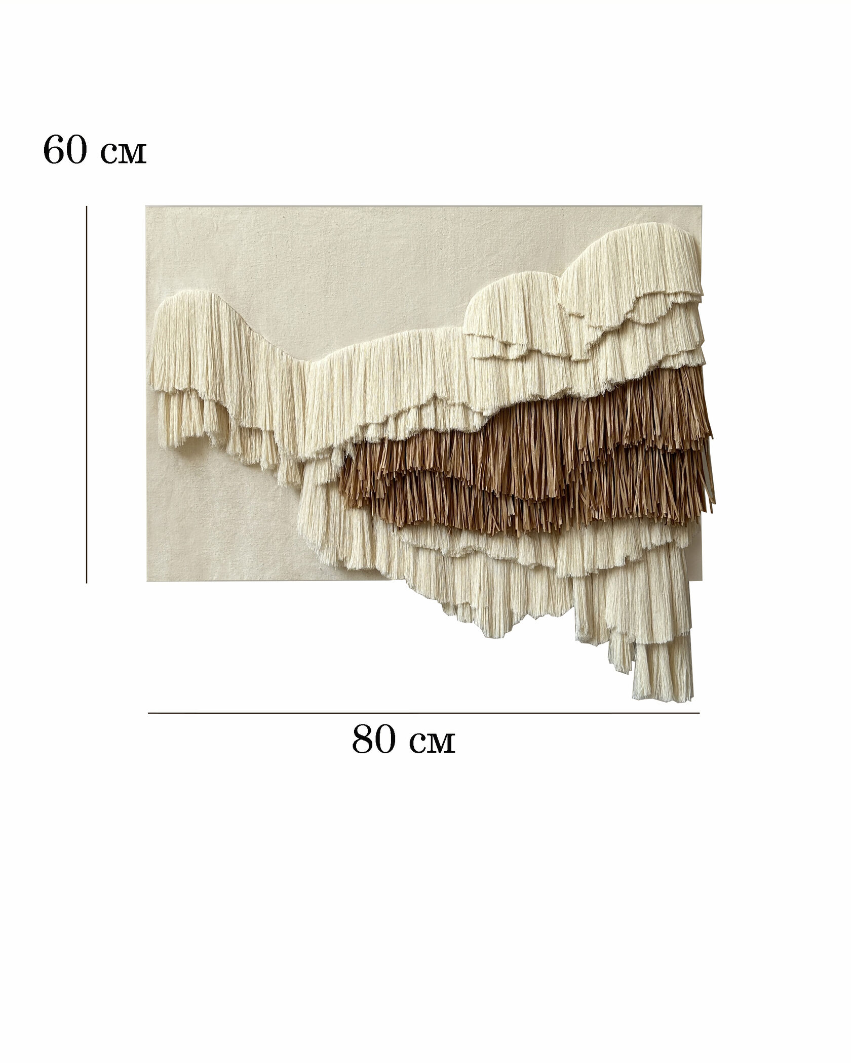 Текстильное панно «Нежность» создано из тончайшей хлопковой нити в нашей авторской технике. Натуральные оттенки, выразительная и нежная тактильная фактура панно создают ощущение прикосновения к природе, позволяя забыть о суете и ощутить момент красоты и спокойствия. Что оно передаёт - нежность хлопковых полей или величие горных вершин, а может кусочек гармонии в вашем доме - решать вам. Основой панно служит холст на подрамнике, что облегчает его размещение на стене. Мы также можем добавить лаконичную рамку из натурального дерева, чтобы легко адаптировать панно в вашем интерьере. Возможно изготовление в различных размерах.