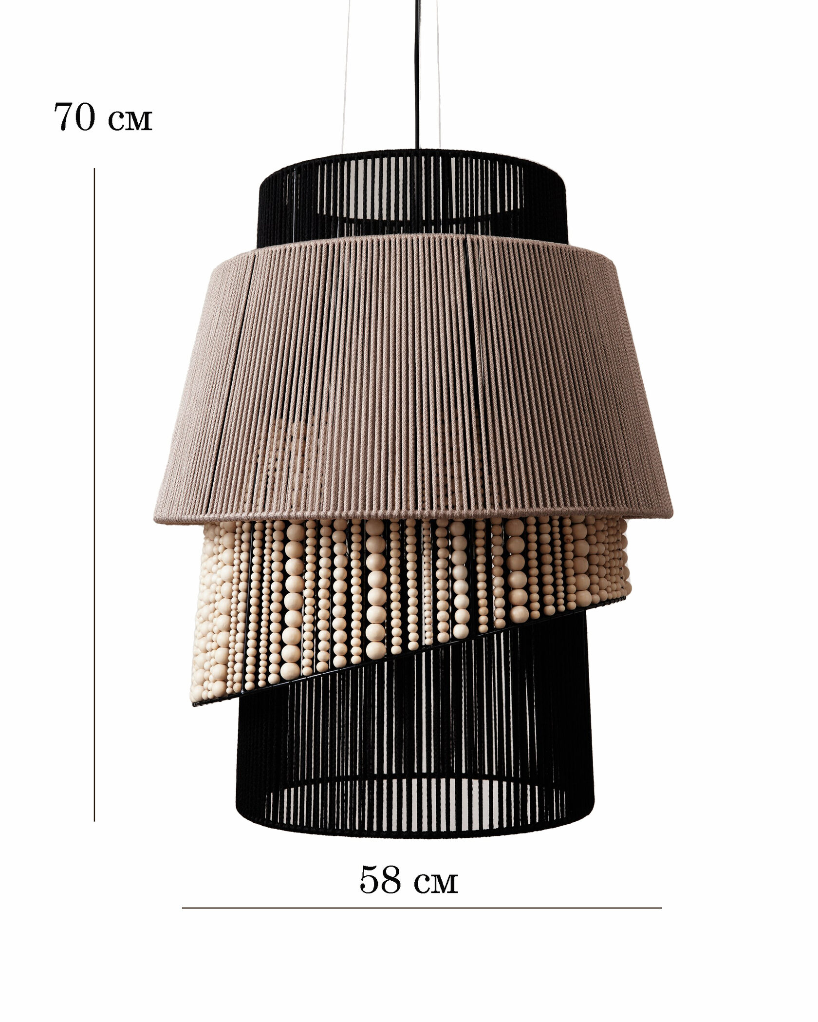 Светильник "Каскад" — наша топовая эффектная модель, которая никого не оставит равнодушным. Это не просто предмет освещения, а настоящий арт-объект, способный стать центром притяжения вашего интерьера и подчеркнуть его индивидуальность. Для его изготовления использовано более 2 300 бусин различных размеров и более 400 метров шнура. Многослойная форма "Каскада" создает волшебную игру светотеней, наполняя пространство мягким и атмосферным светом.