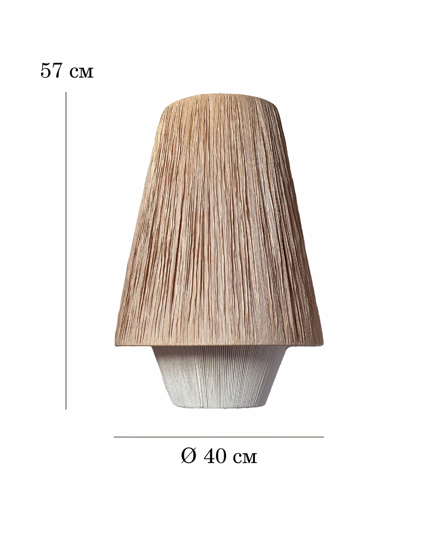 Размеры: диаметр 40 см, высота 57 см Материал: рафия, полиэфирный шнур Вес: 1,05 кг