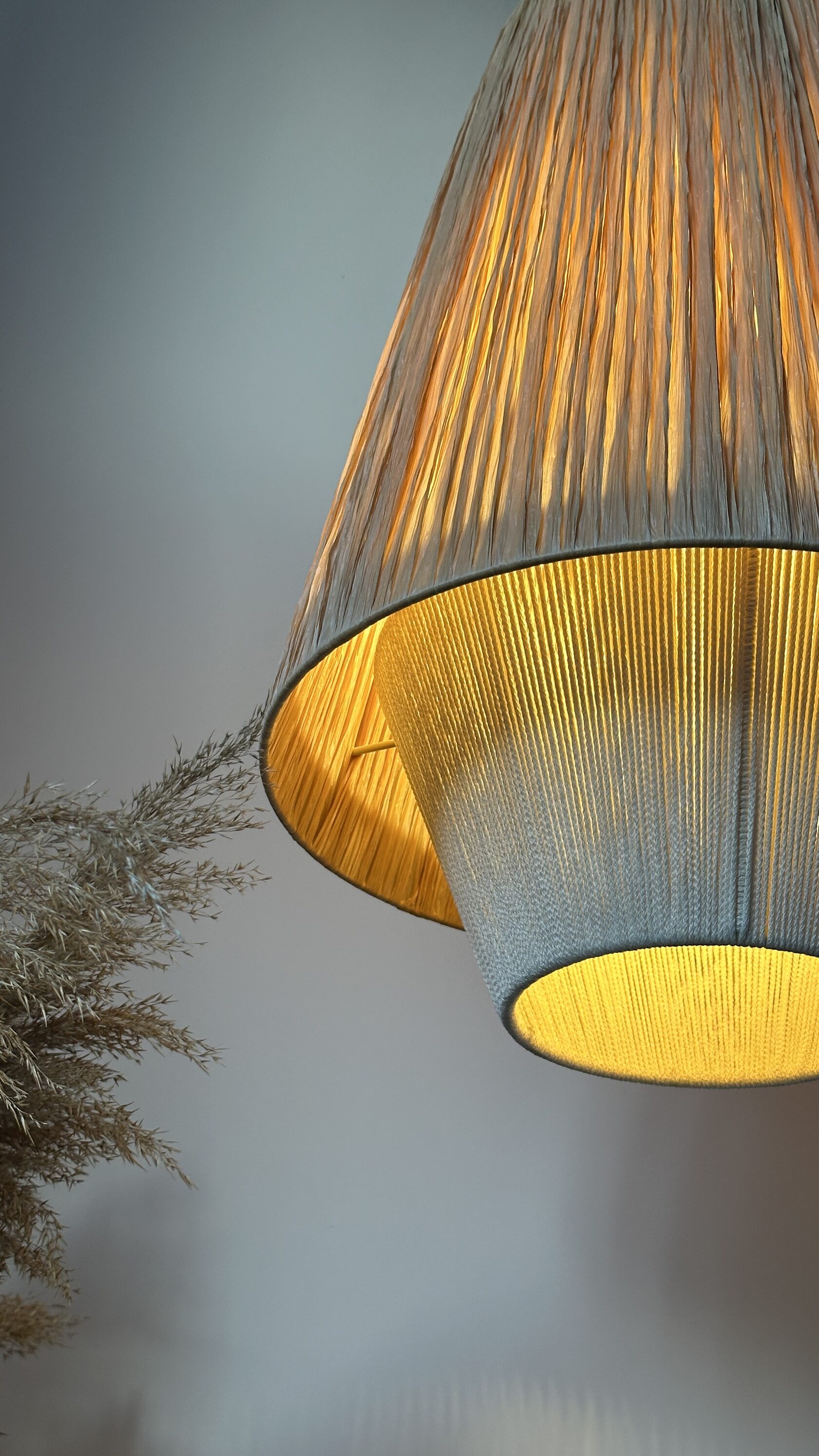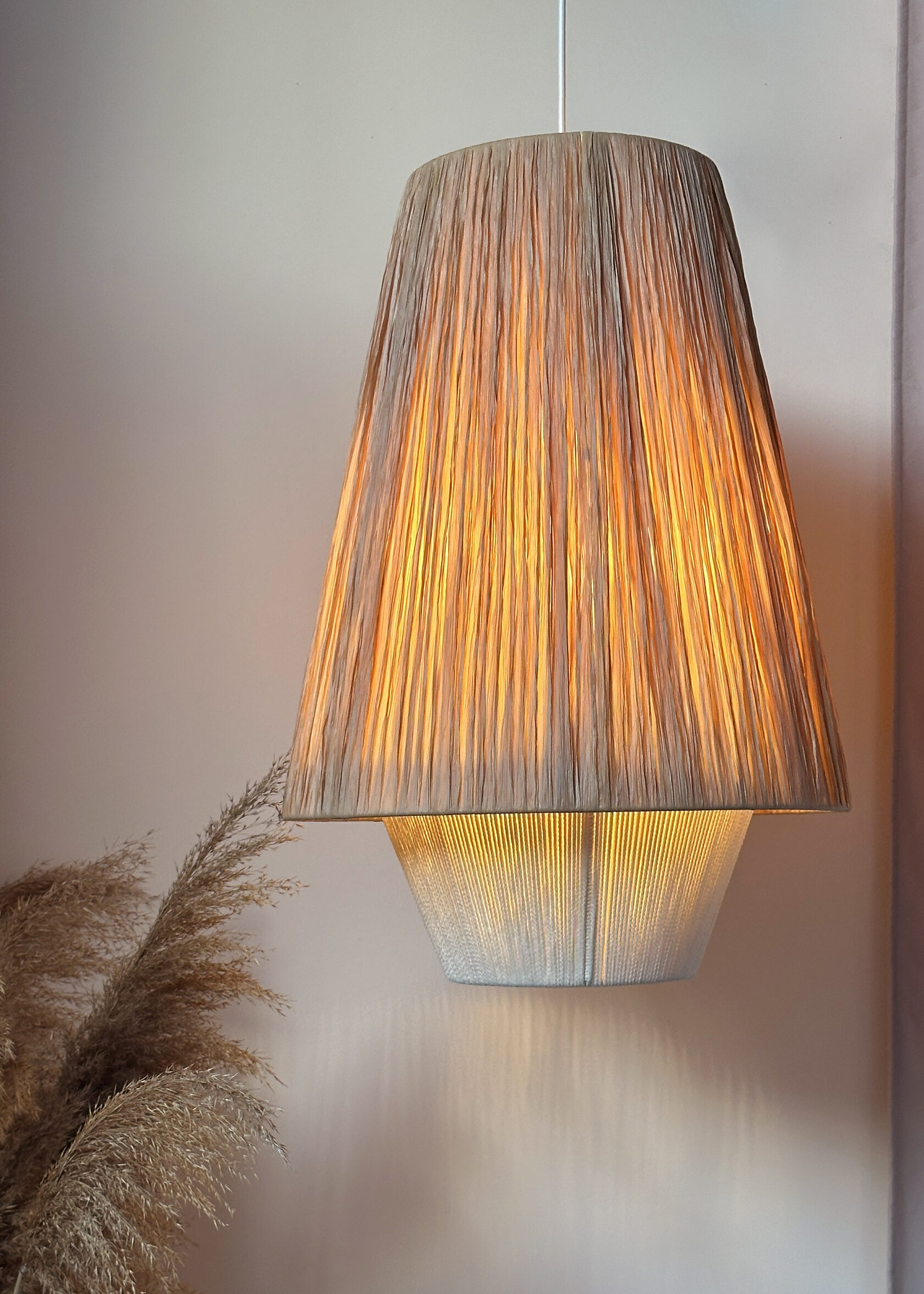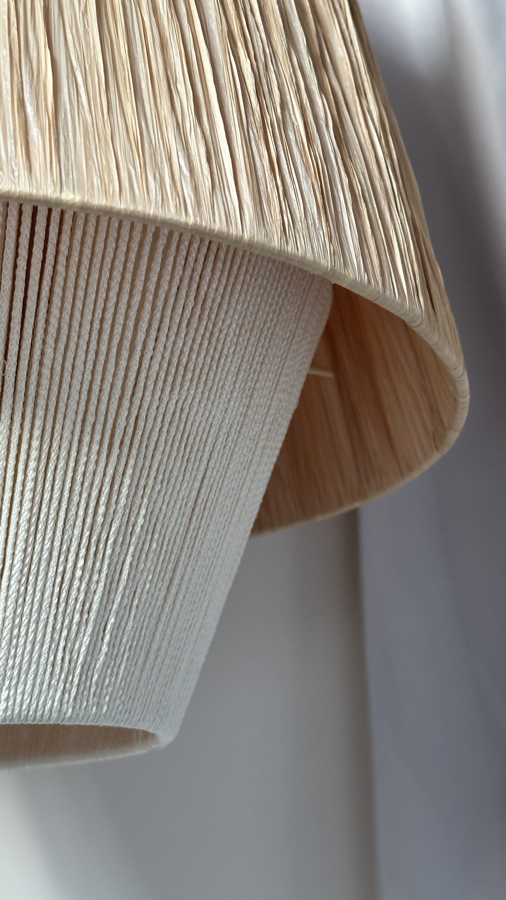 Светильник "Raffia 2" из нашей линейки светильников из натурального волокна пальмы рафии это воплощение уюта и тепла в вашем доме. Мягкие пшеничные оттенки с терракотовым подтоном, фактурность и тактильность абажура и невероятно уютное теплое свечение вечером. Мы предлагаем подвес (патрон и провод) в белом или черном цвете, что позволяет легко адаптировать светильник под ваш интерьер.