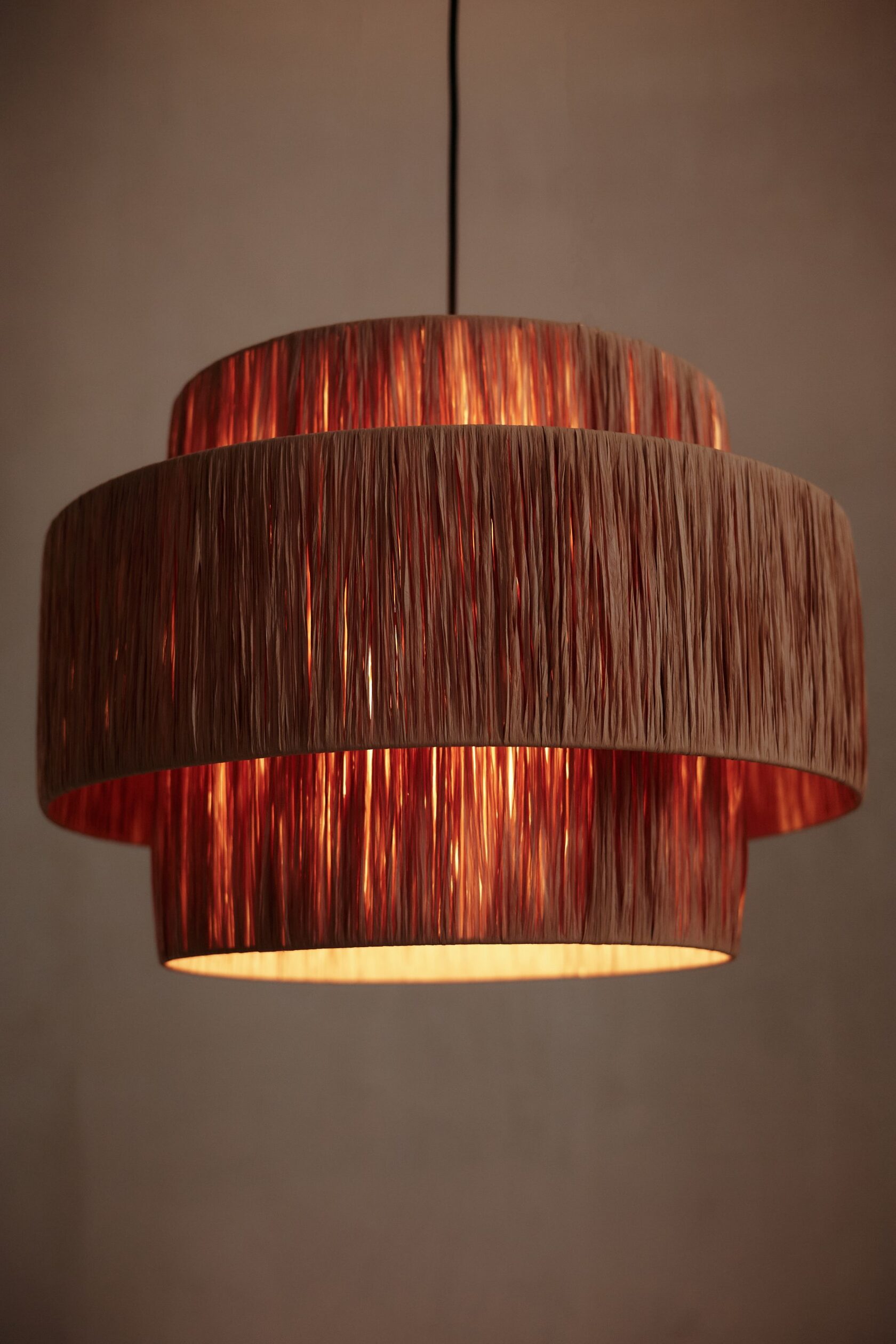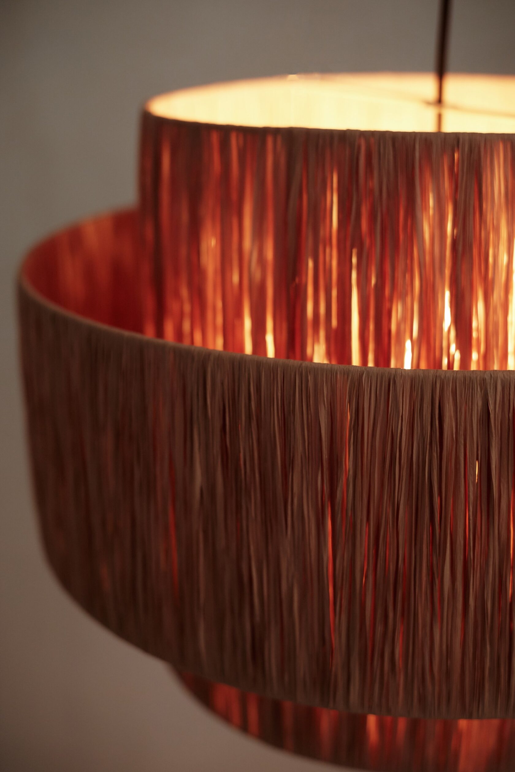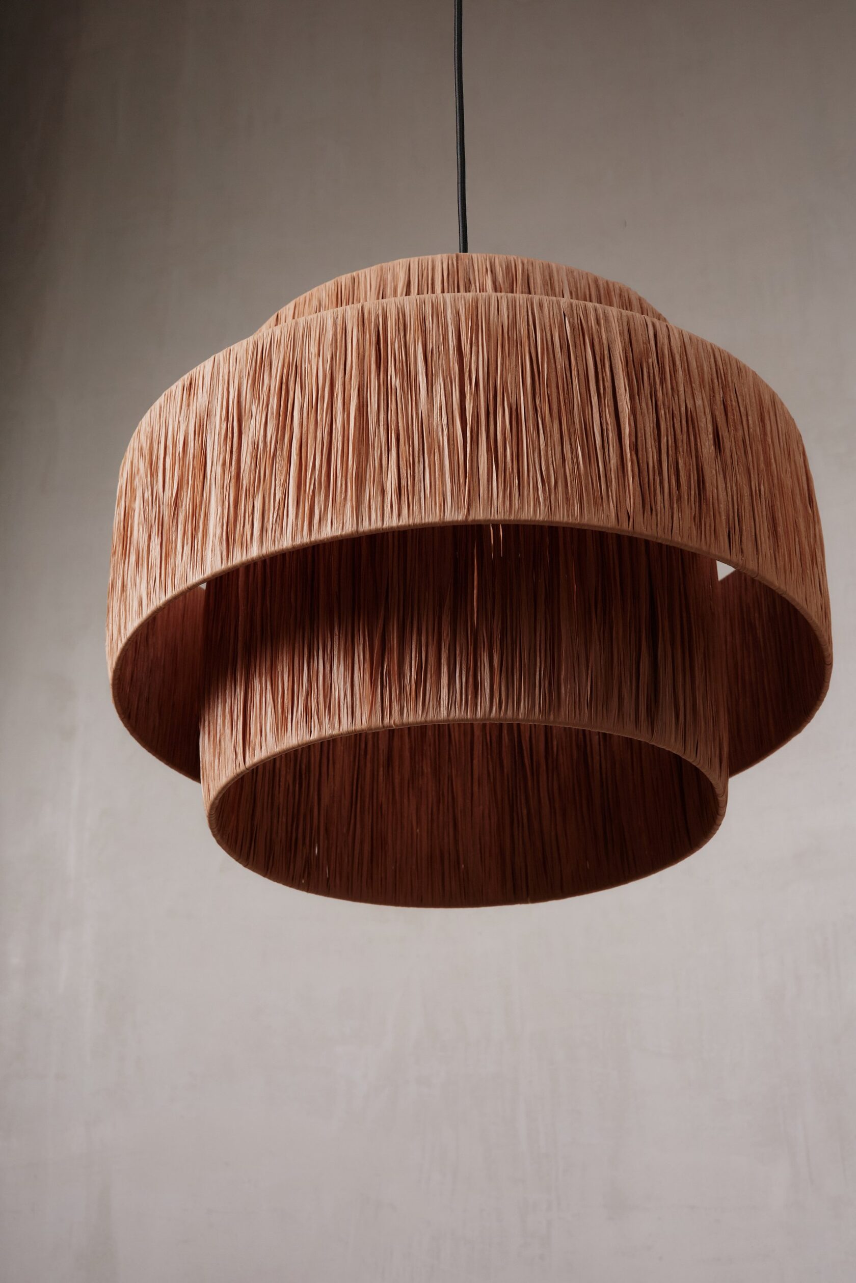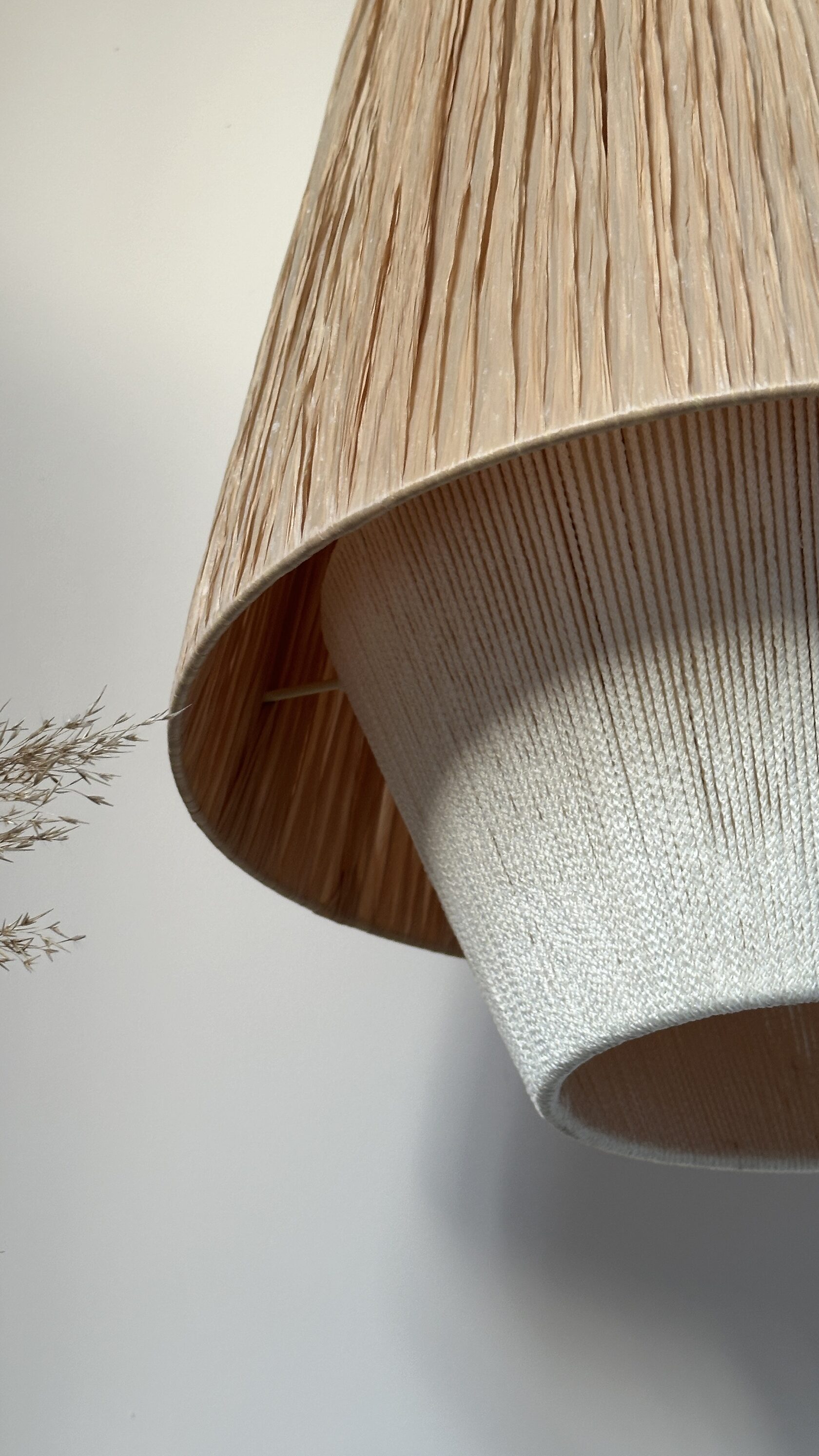 Светильник "Raffia 2" из нашей линейки светильников из натурального волокна пальмы рафии это воплощение уюта и тепла в вашем доме. Мягкие пшеничные оттенки с терракотовым подтоном, фактурность и тактильность абажура и невероятно уютное теплое свечение вечером. Мы предлагаем подвес (патрон и провод) в белом или черном цвете, что позволяет легко адаптировать светильник под ваш интерьер.