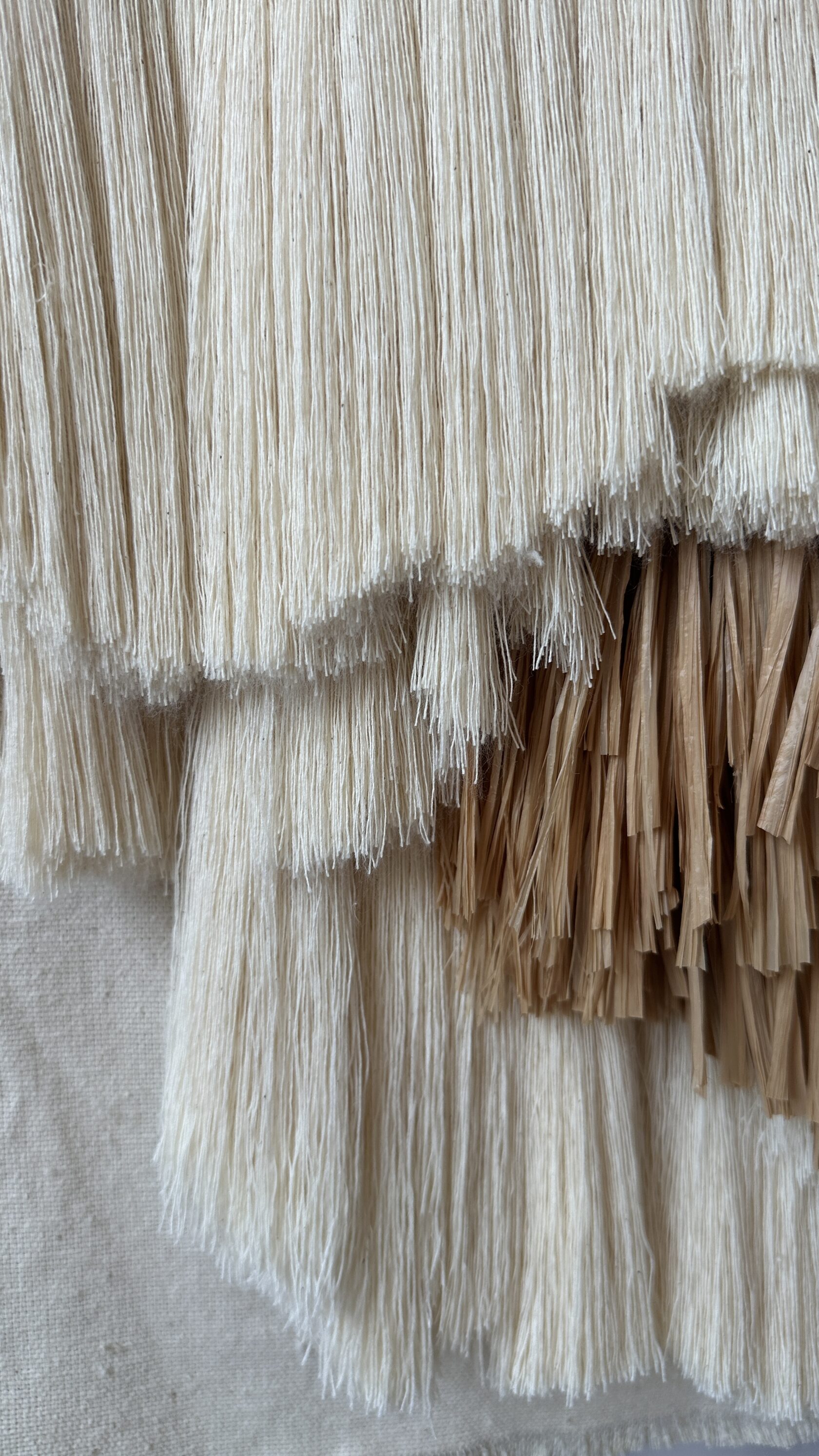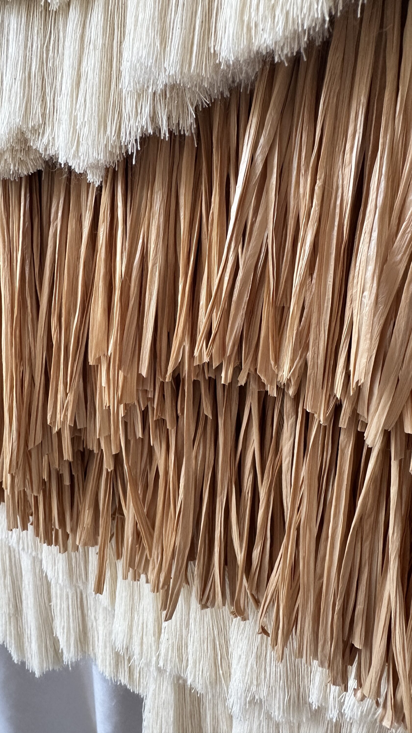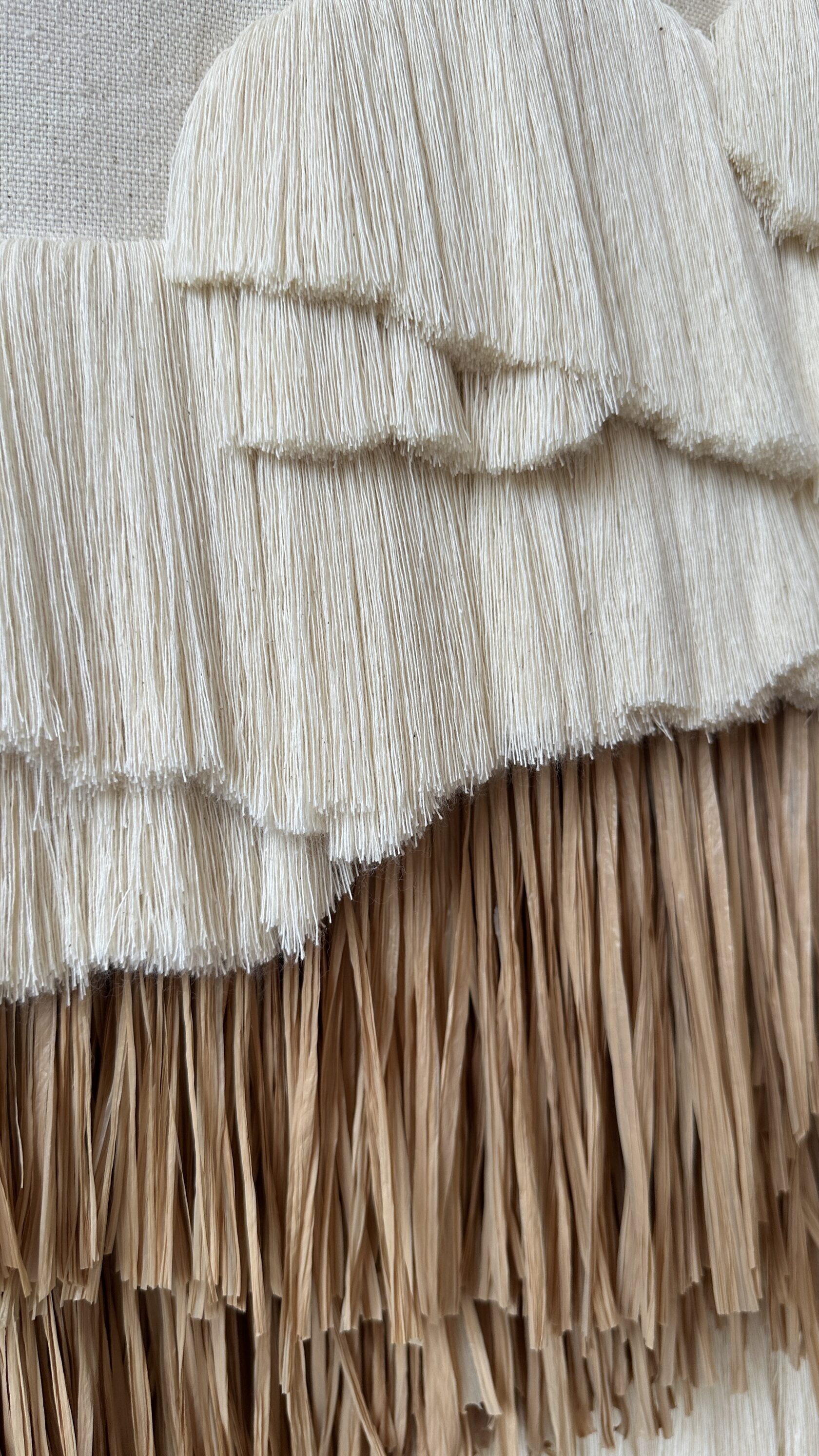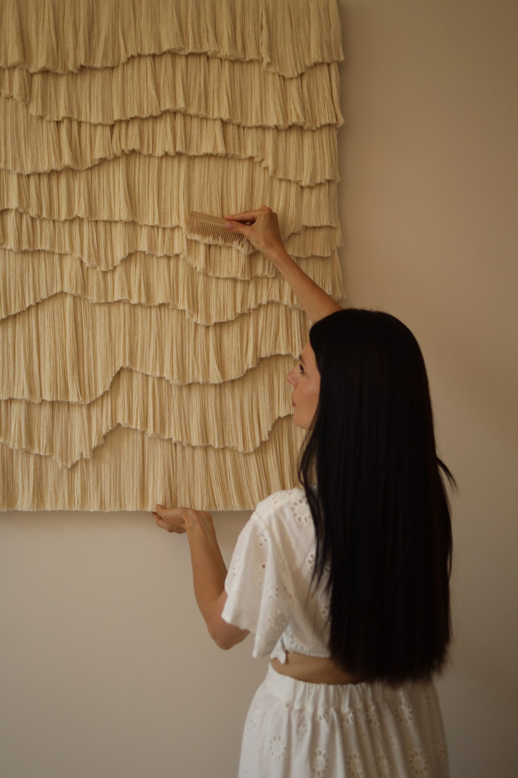 Текстильное панно "Гармония" выполнено из нежнейшего премиального органического хлопка и рафии в натуральном пшеничном оттенке. Этот уникальный элемент декора станет стильным акцентом в интерьере, идеально вписываясь в различные стили: современный минимализм, эко-стиль, ваби-саби, бохо, деревенский стиль или эклектику.