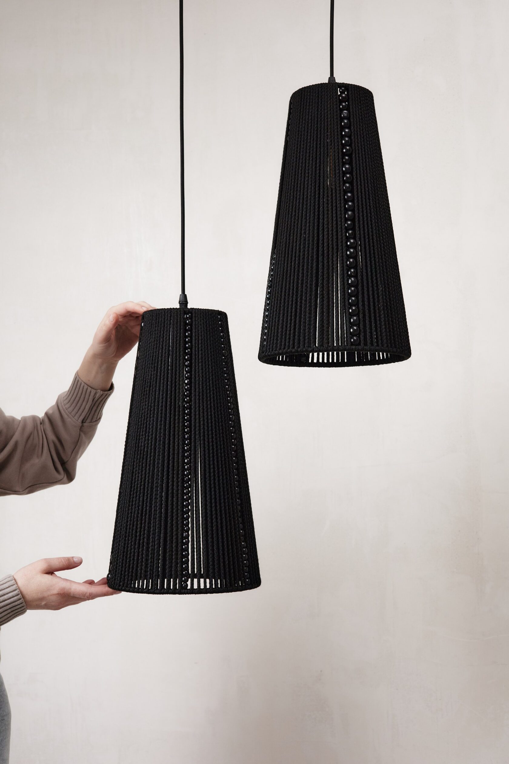 Светильники "Конусы" - лаконичные и современные по форме со вставками нитей из бусин, идеально впишутся в различные по стилю интерьеры: от минимализма до бохо. Рекомендуем использовать их в паре, например, над прикроватными тумбами в спальне или обеденным столом. Также их возможно изготовить без вставок из бусин. Цена указана за пару.