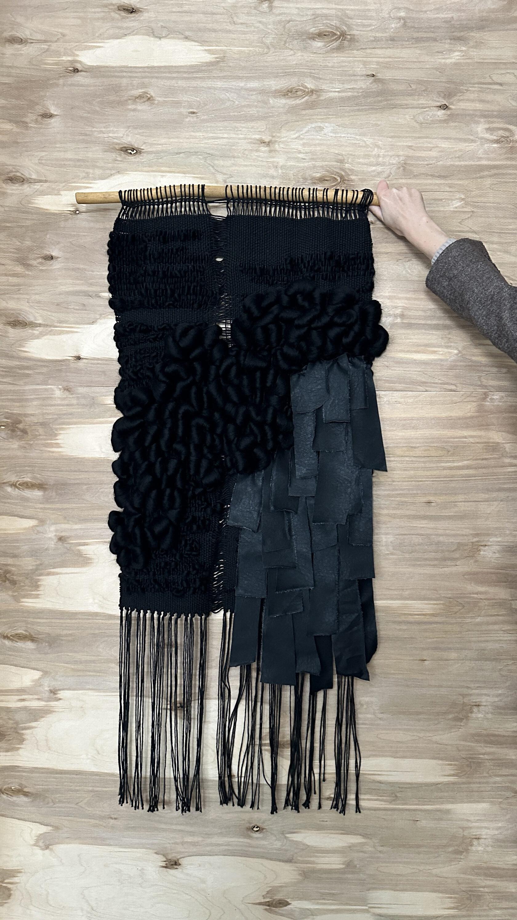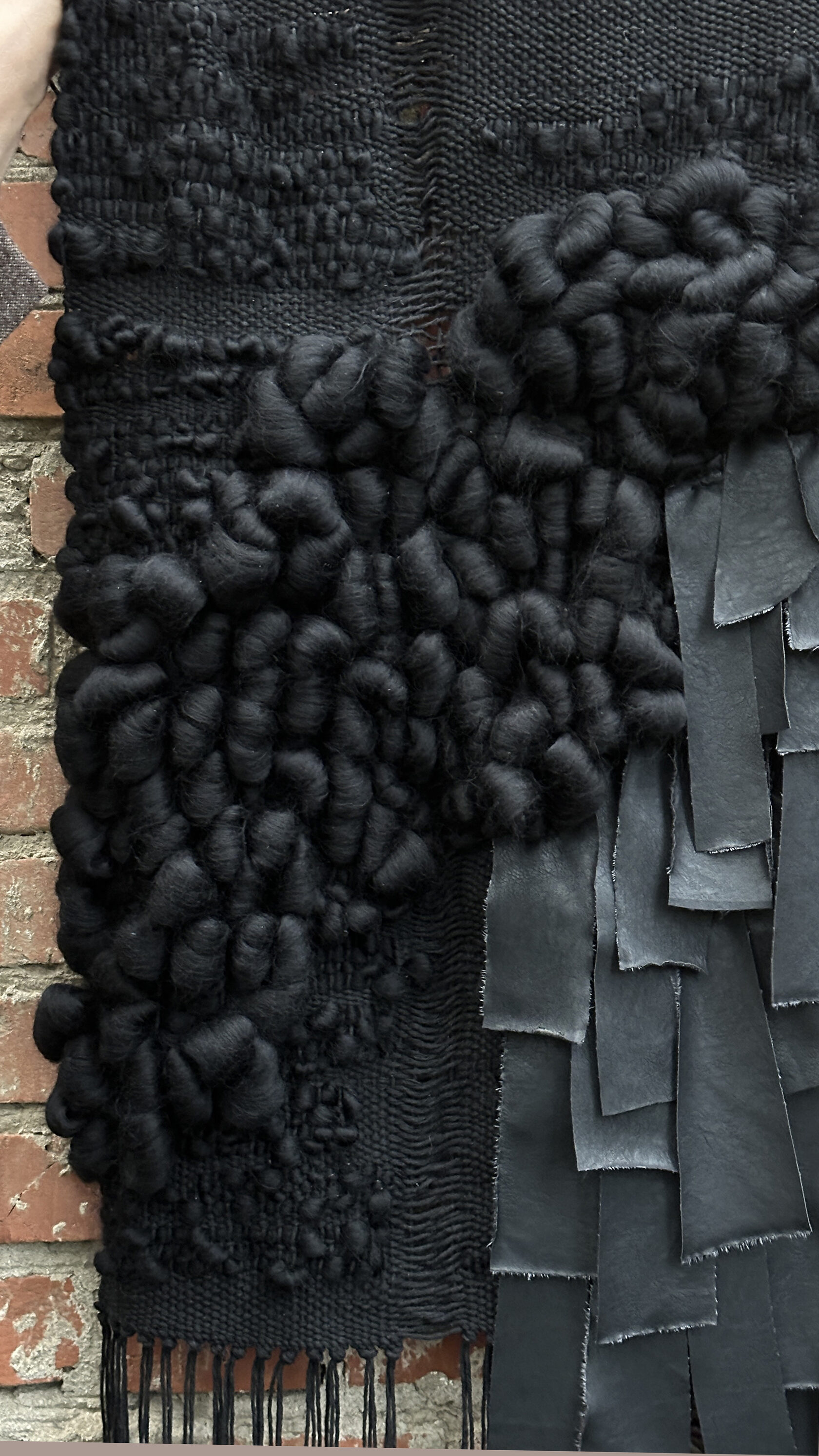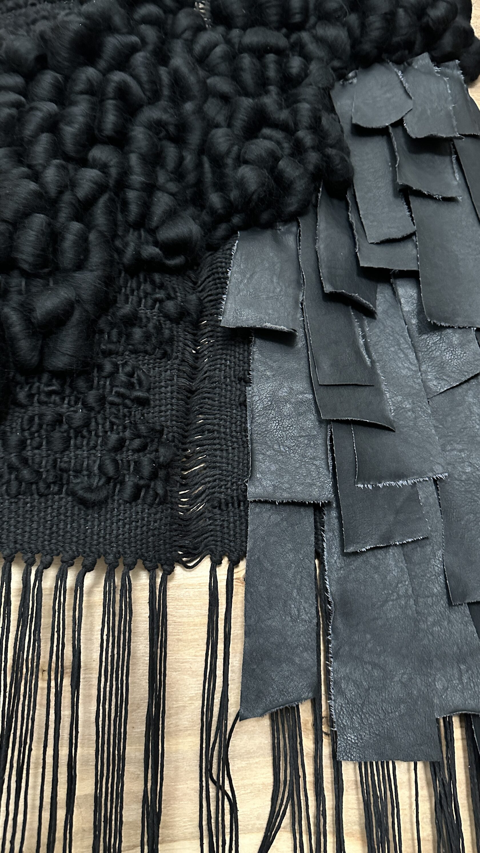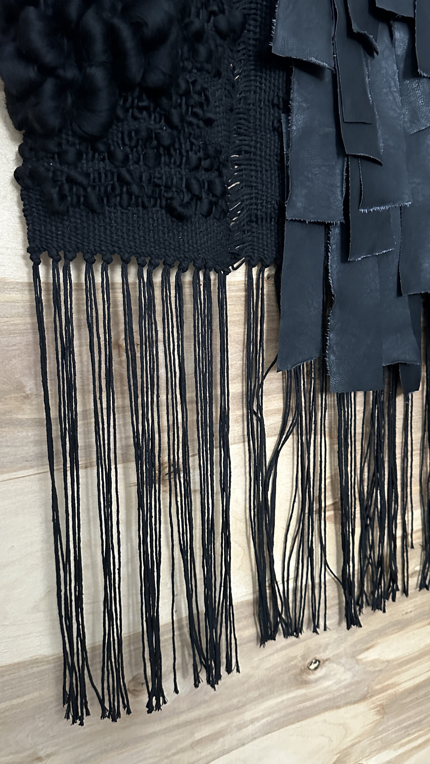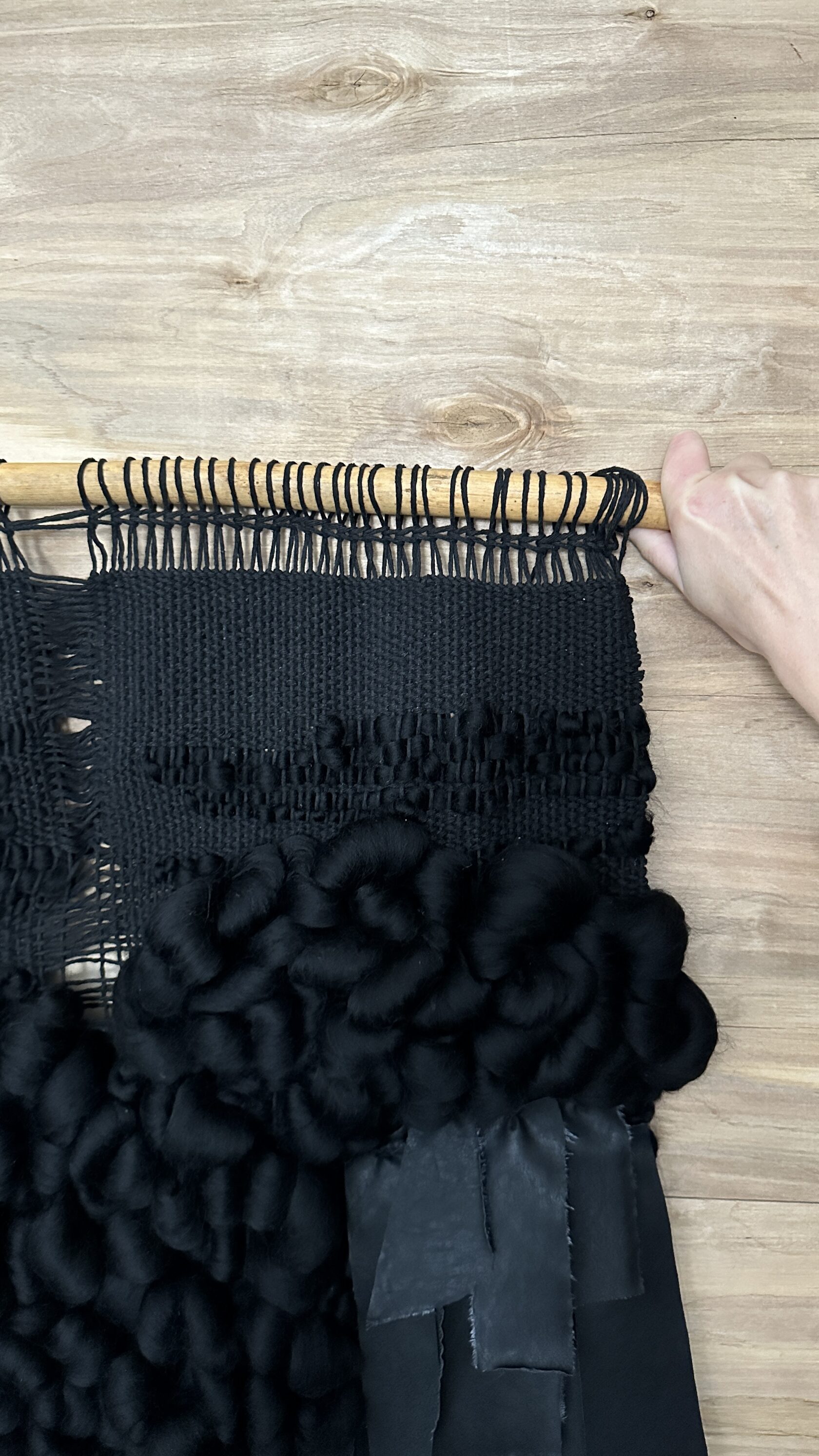 Каждая фактура в панно "Черный лебедь" играет свою роль: мягкость волн из шерсти мериноса и четкость хлопкового плетения контрастируют с грубой, но изящной рваной черной тканью, создавая драматичный ритм и объем. Неровные края, ручная работа, необычное сочетание материалов и слегка асимметричная композиция придают панно характер — оно будто хранит историю, которую вы можете додумать сами. Панно подойдет для интерьеров самых разных стилей — лофт, современный минимализм, бохо, джапанди. Оно станет центром притяжения и необычным акцентом, притягивающим взгляды.
