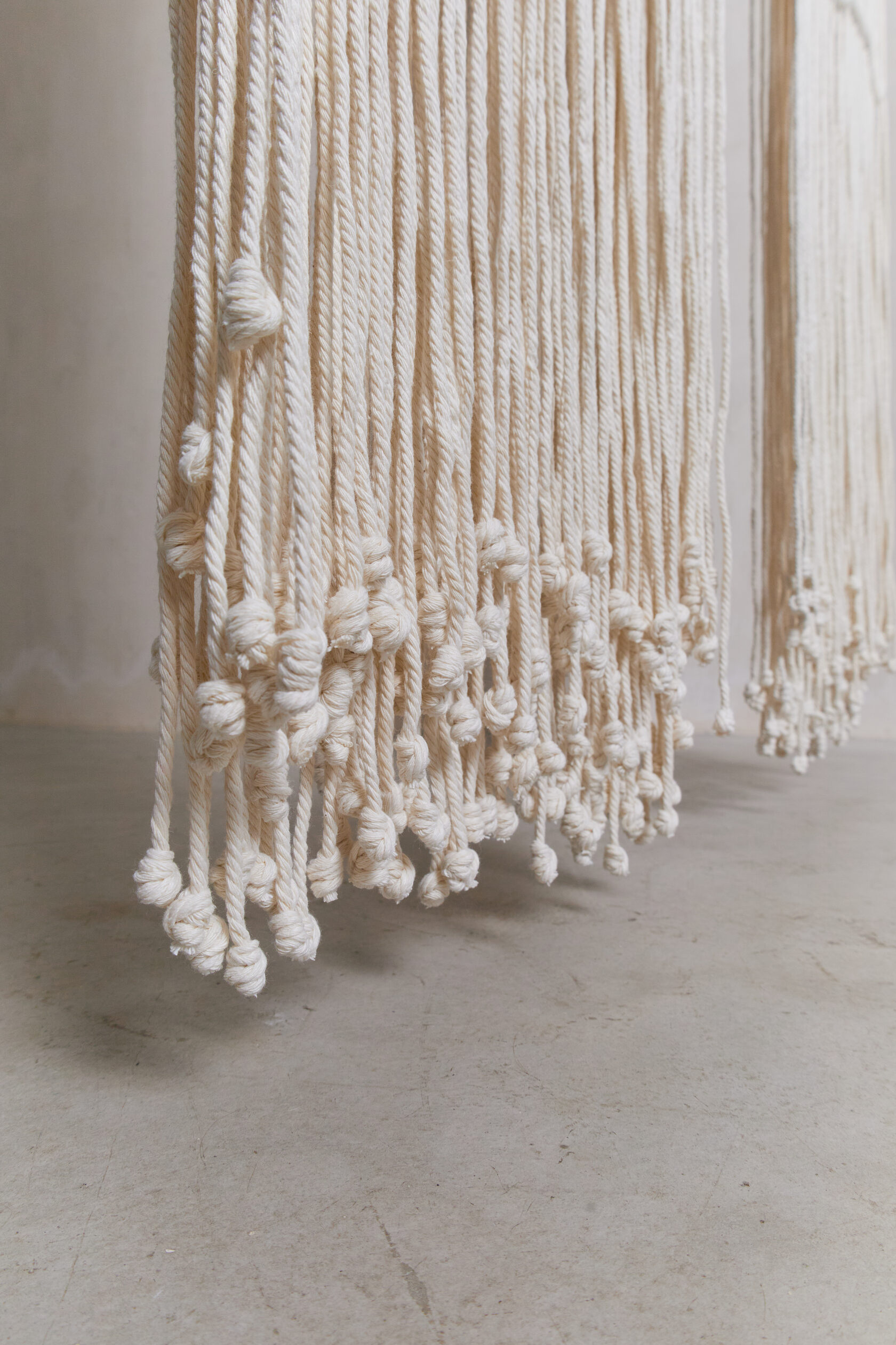 Размеры: ширина 100 см, высота 270 см, в том числе длина нитей 170 см. Кроме того, есть плетеные канаты для подвешивания панно длиной 260 см.